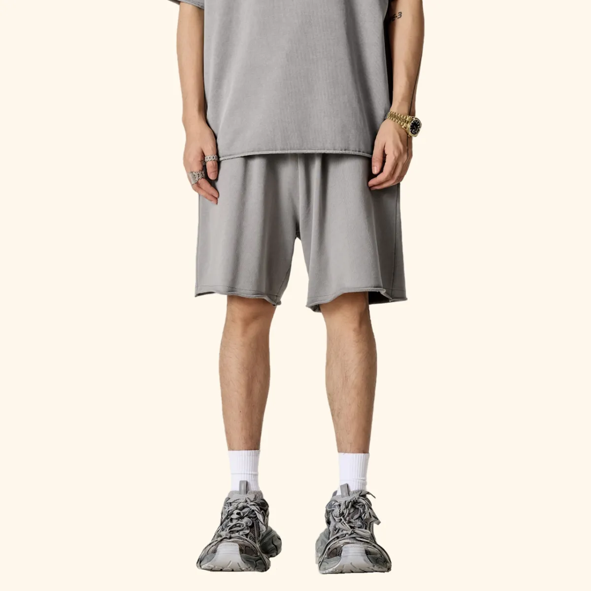 330GSM Unisex Heavyweight 100% Cotton Webbing Drawstring Snow-Washed Shorts