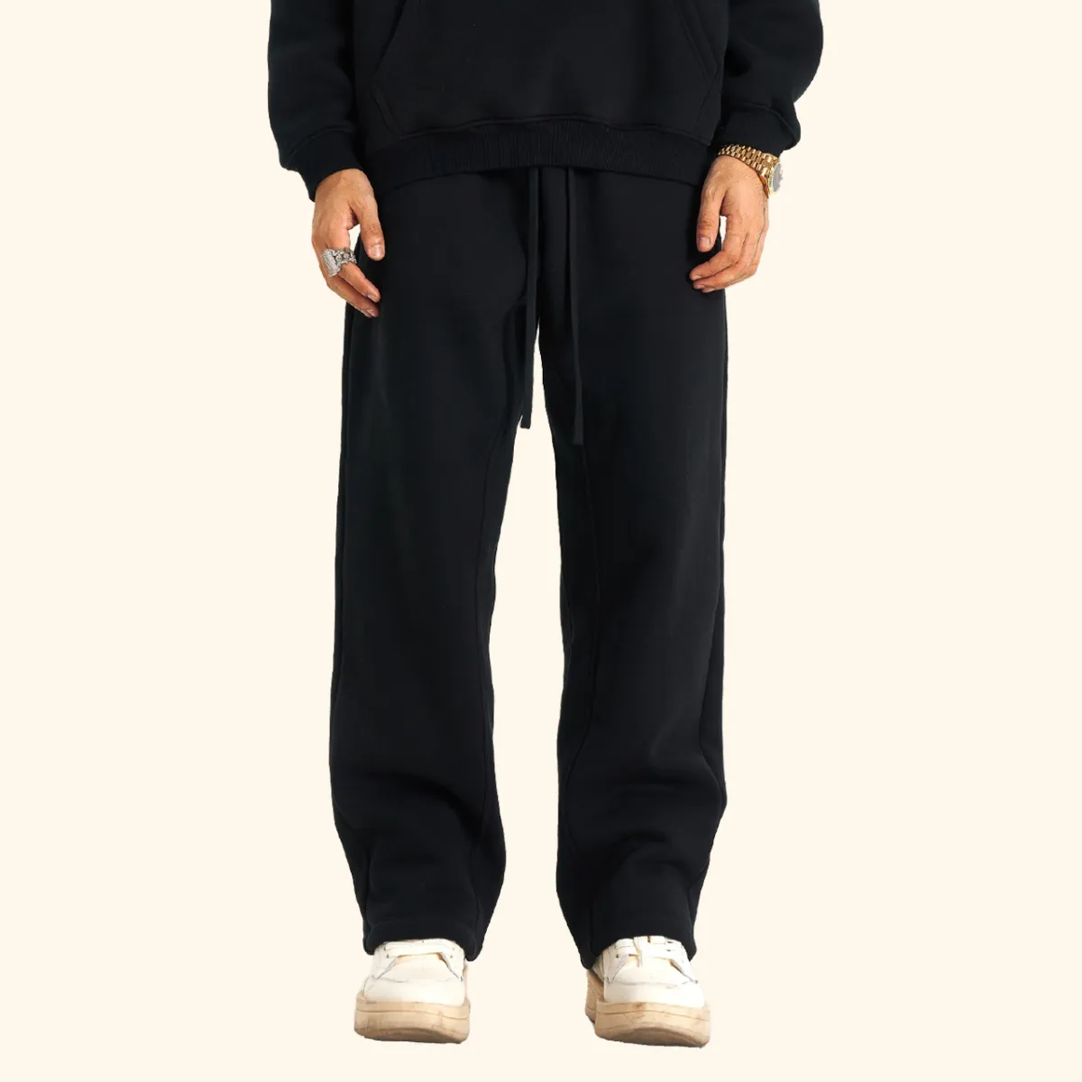 345GSM Unisex Solid-Color Relaxed Fleece-Lined Straight-Leg Pants