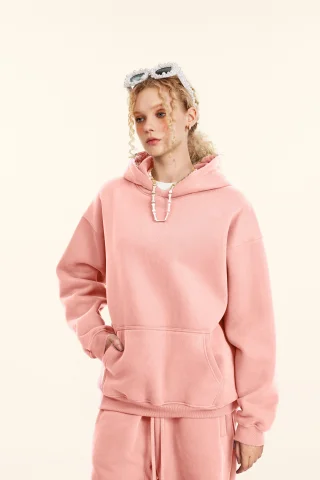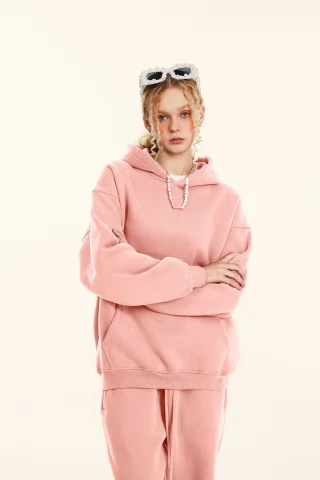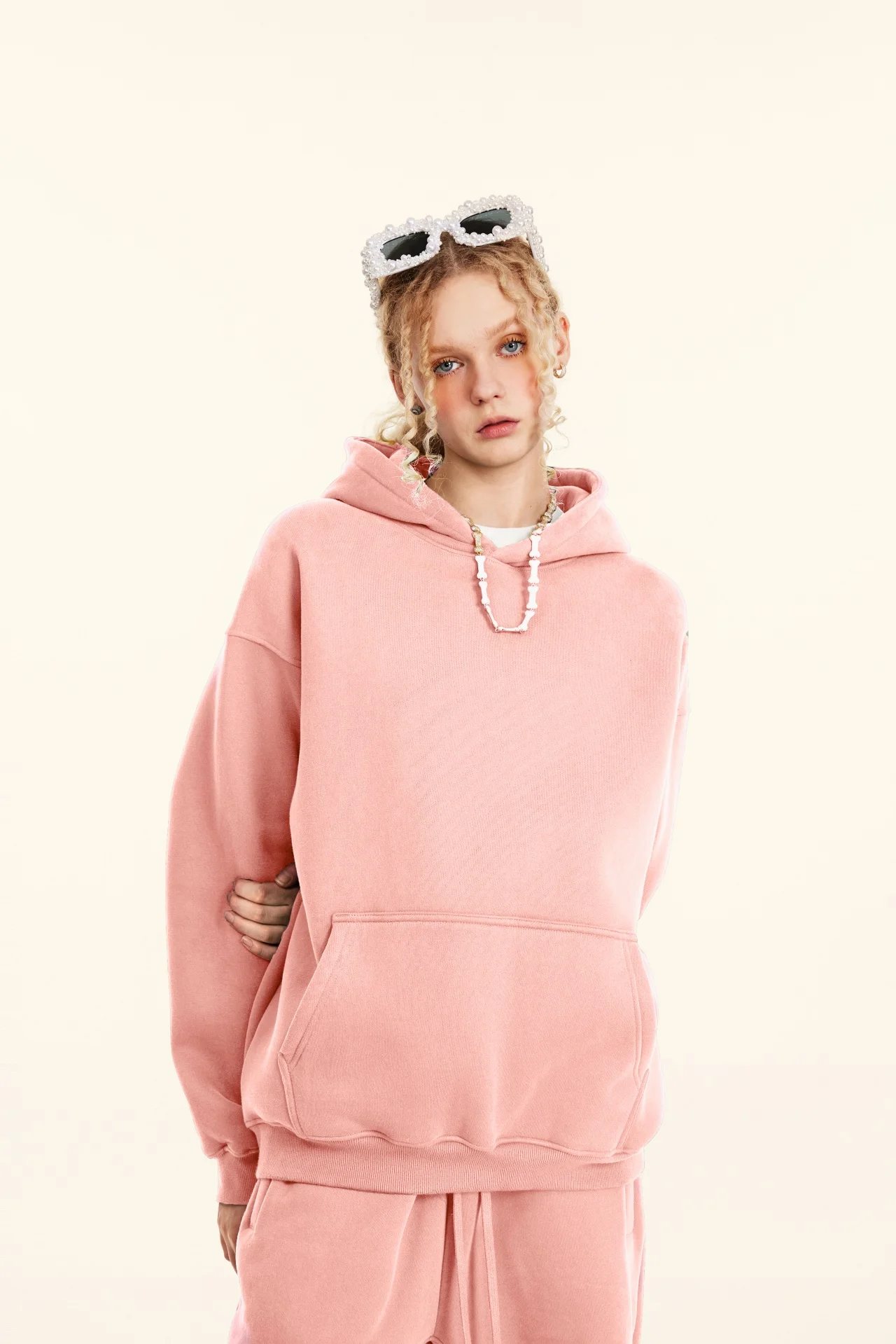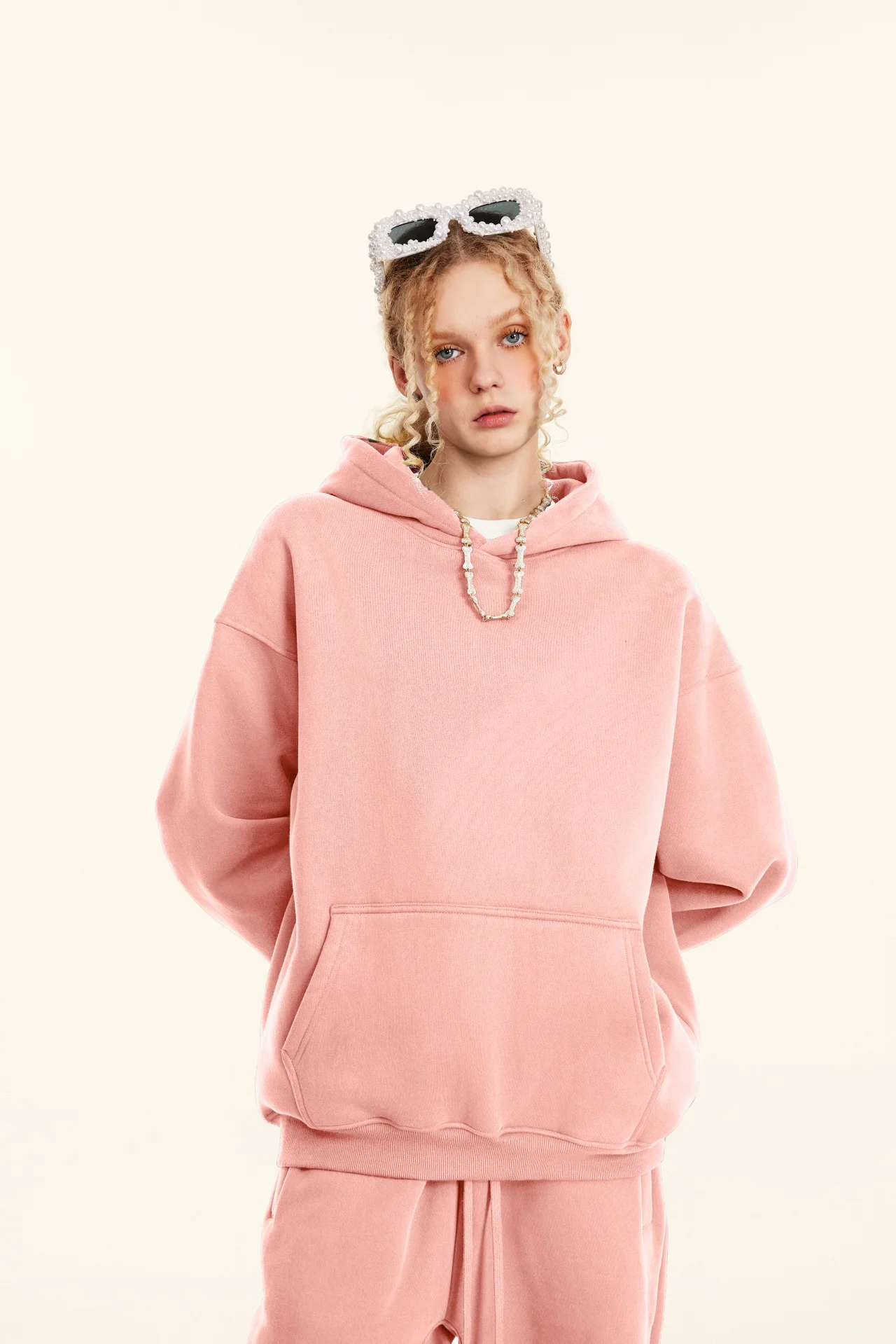 345GSM Women's Heavyweight Solid-Color Hooded Sweatshirt