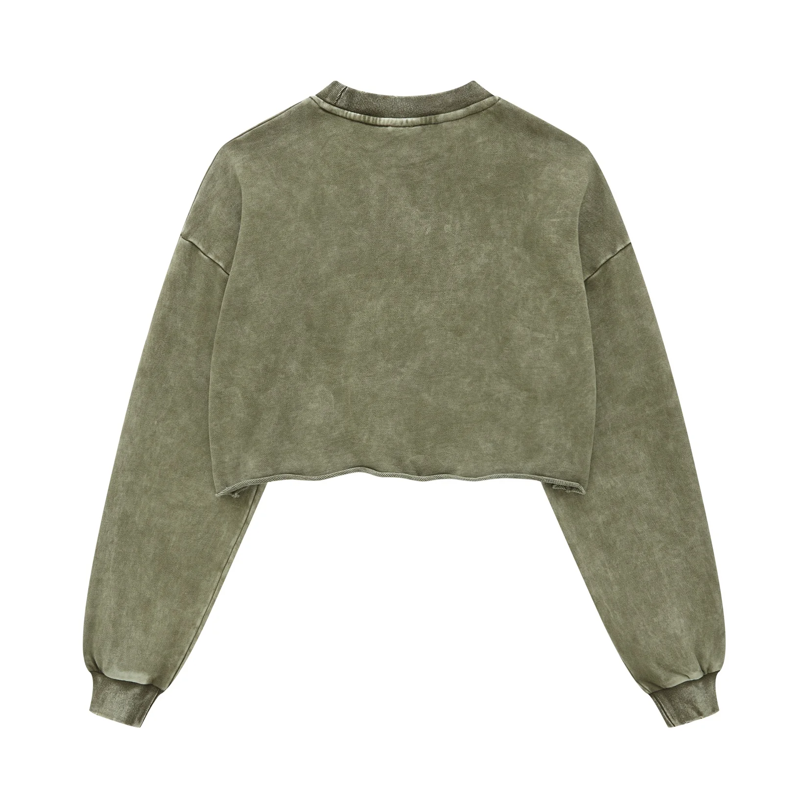 380GSM Women’s Heavyweight Distressed Snow-Wash Raw-Hem Cropped T-shirt