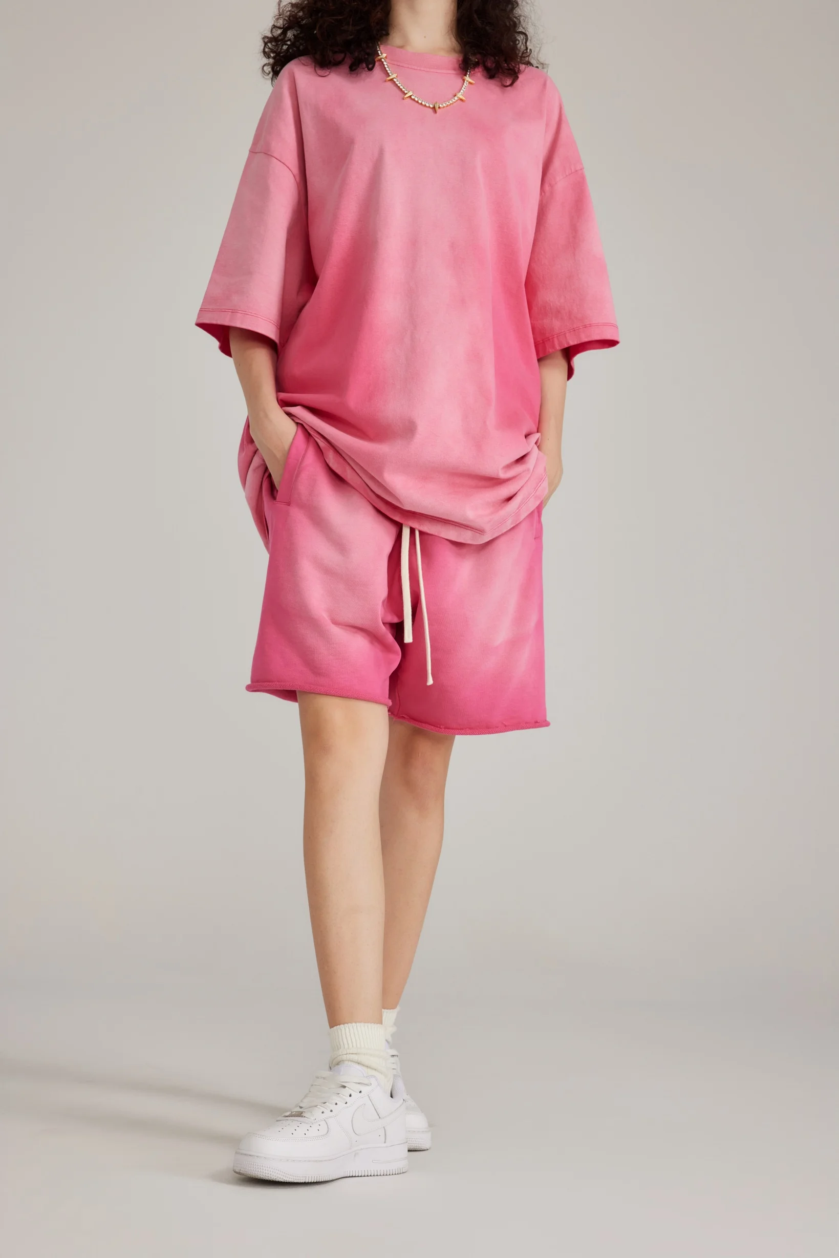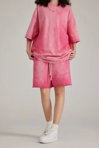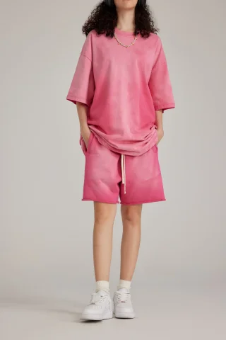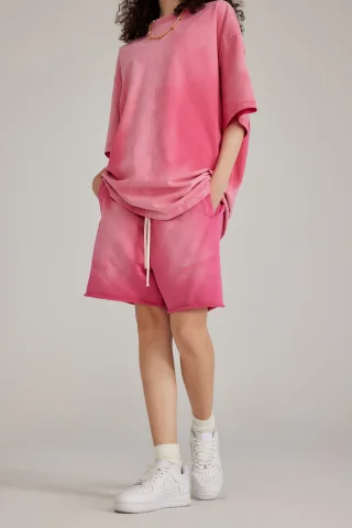 440GSM Women's Heavyweight Spray Fading Technique Washed Shorts