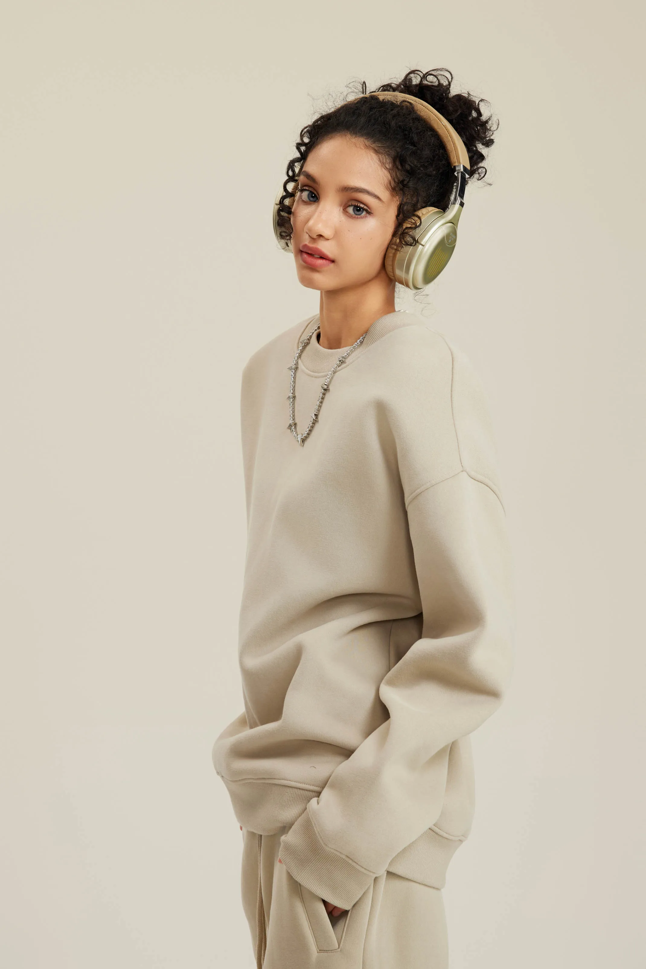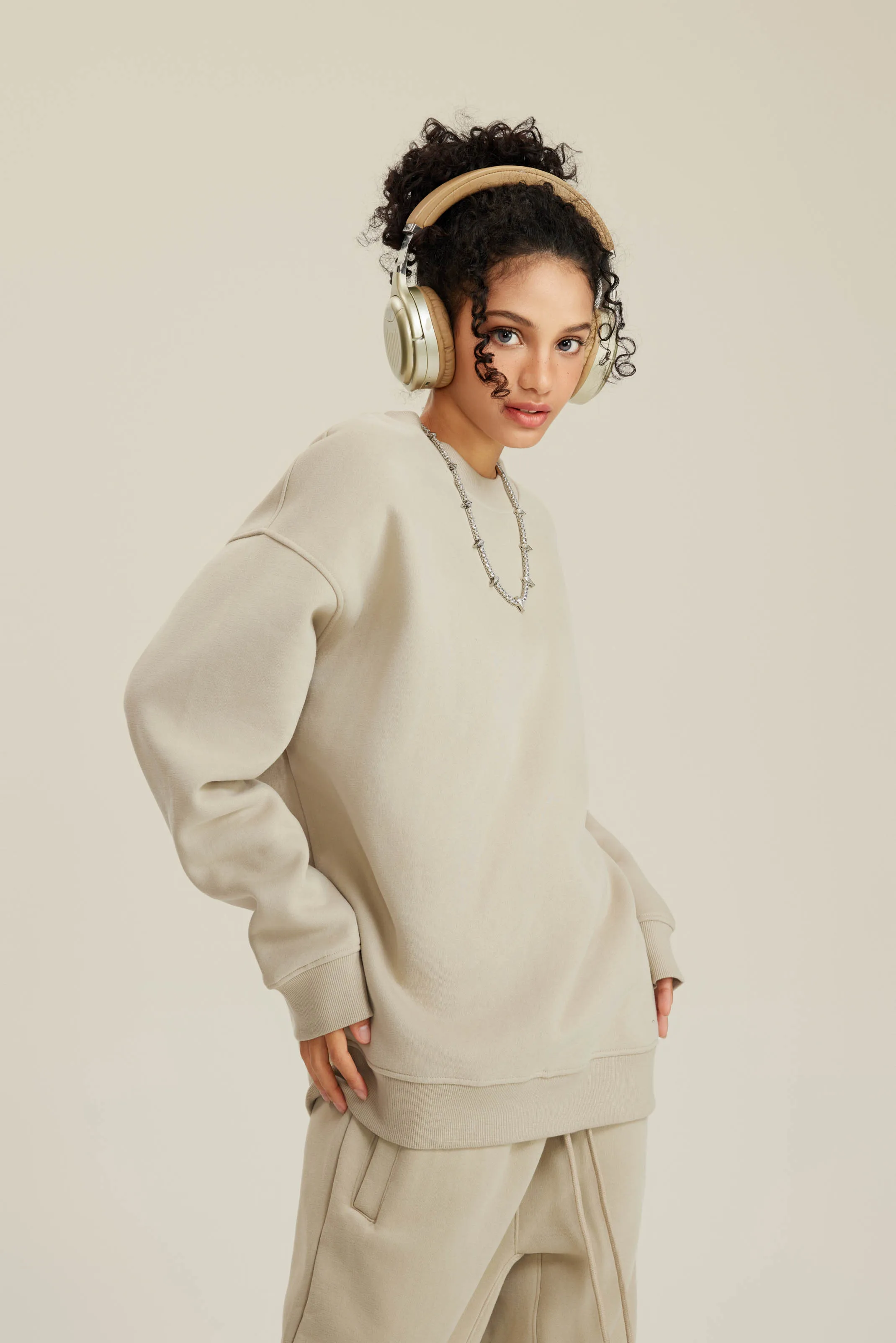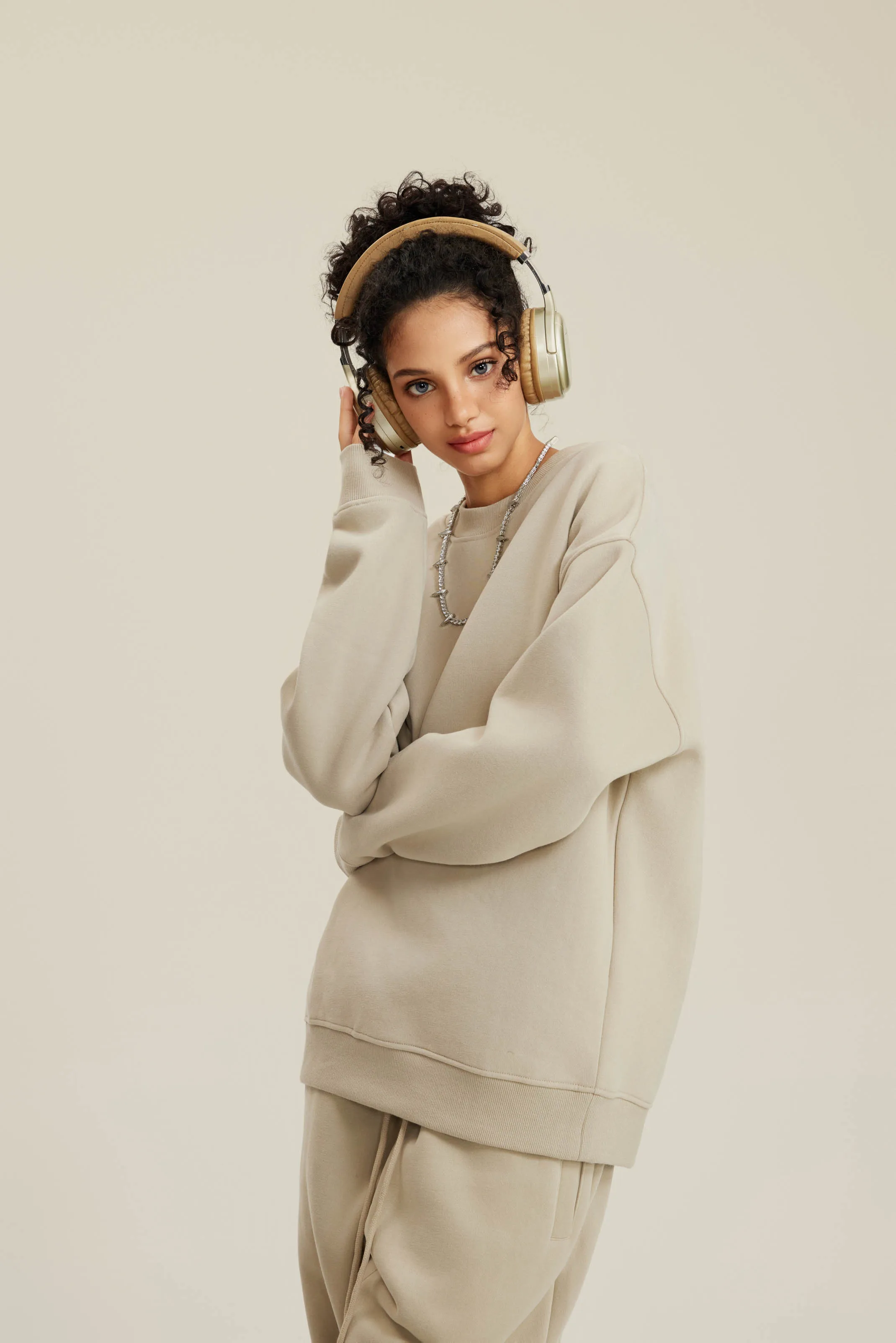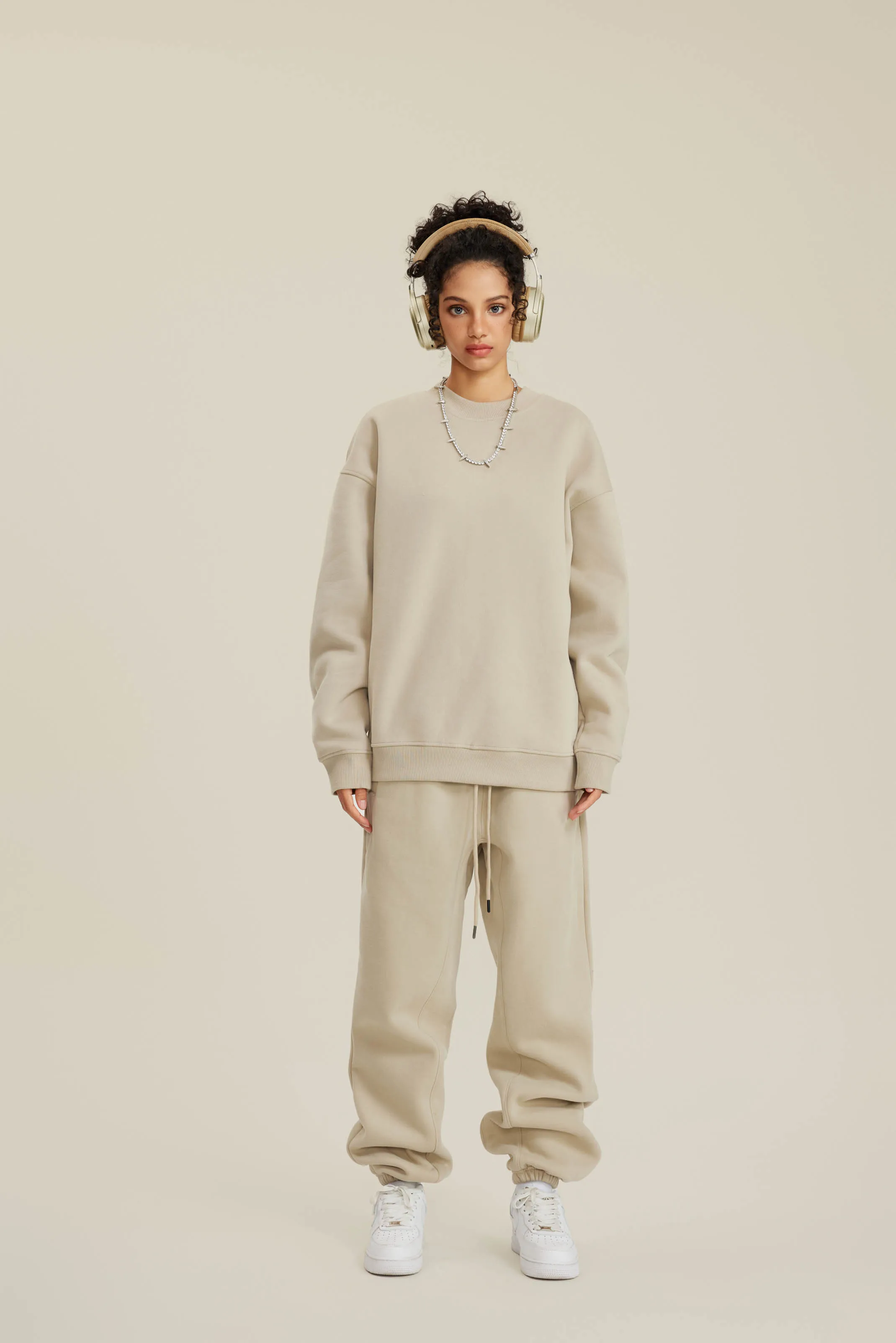 350GSM Women’s Solid-Color Crew Neck Sweatshirt with American-Style Small Collar