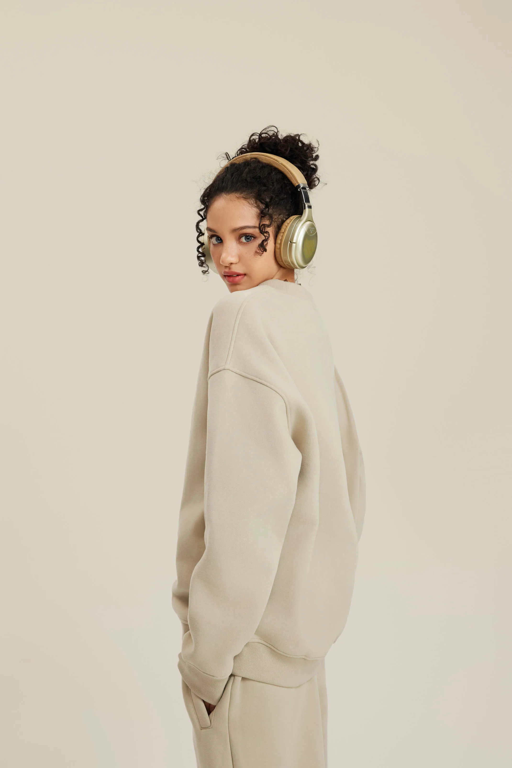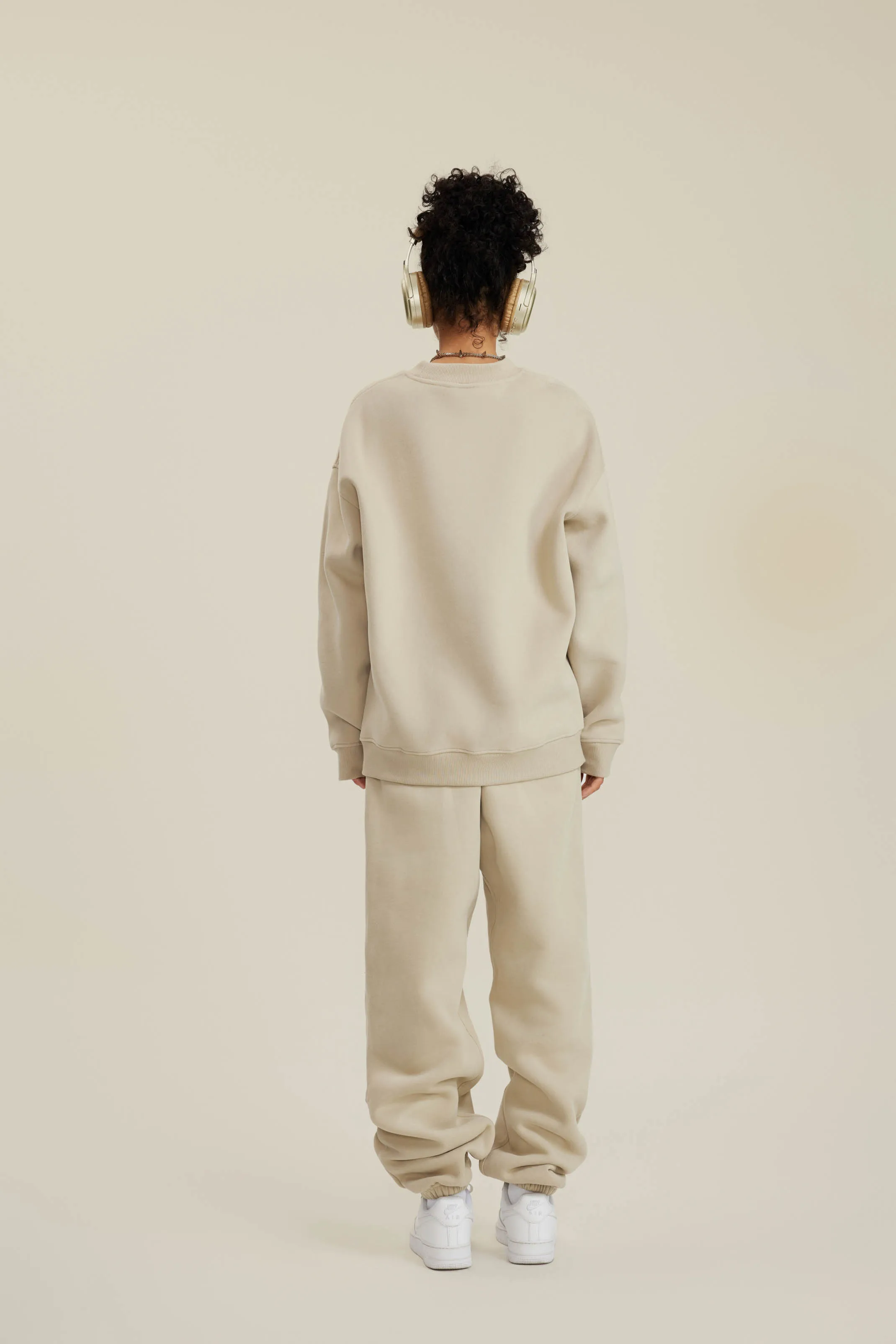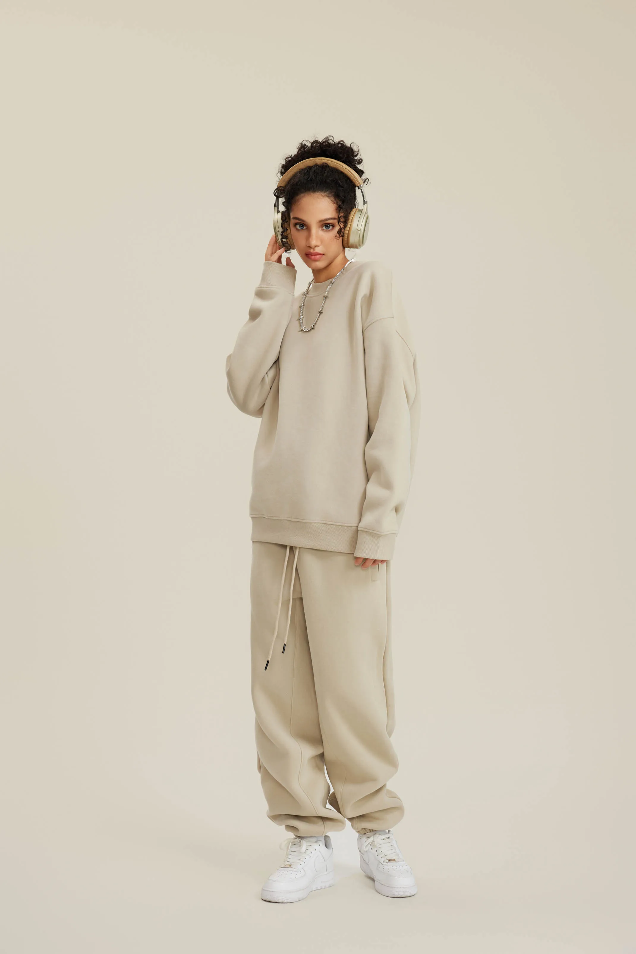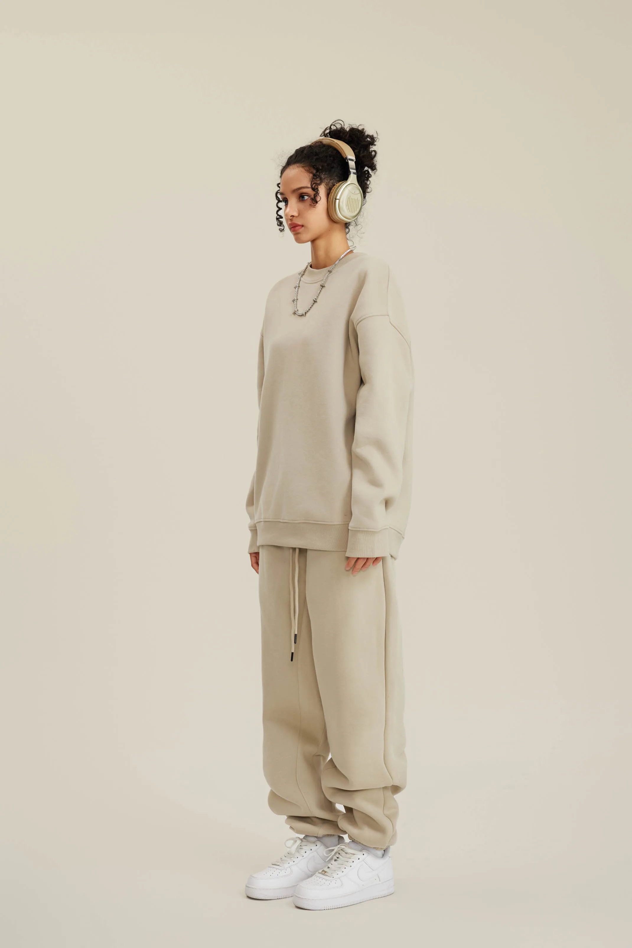 350GSM Women’s Solid-Color Crew Neck Sweatshirt with American-Style Small Collar