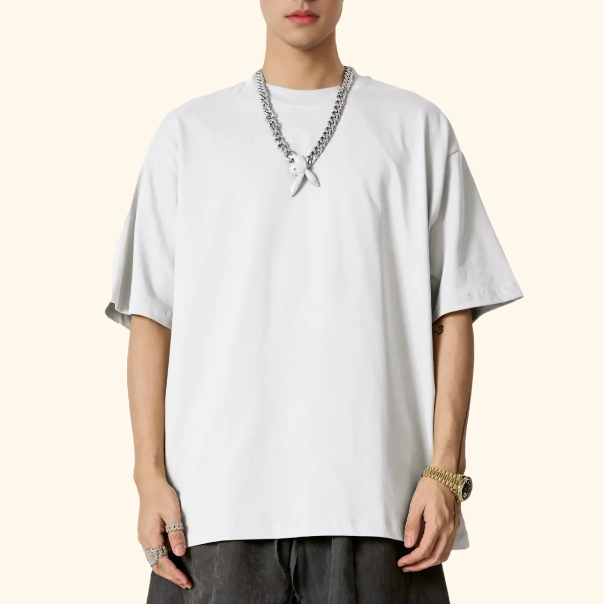 Crafted from 100% long-staple cotton, this 255GSM T-shirt offers anti-mite, antibacterial, negative ion, and cooling properties. The ribbed crew neck, reinforced back tape, and double-stitched cuffs and hem ensure durability and shape retention. With minimal shrinkage and premium finishing, it delivers high-quality comfort suitable for any apparel line.
