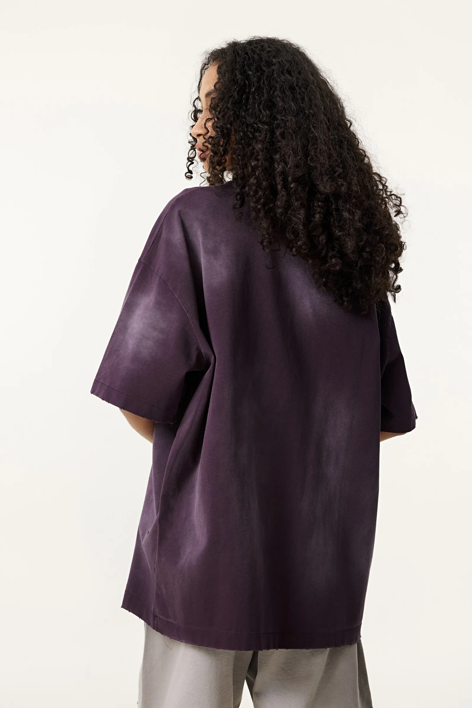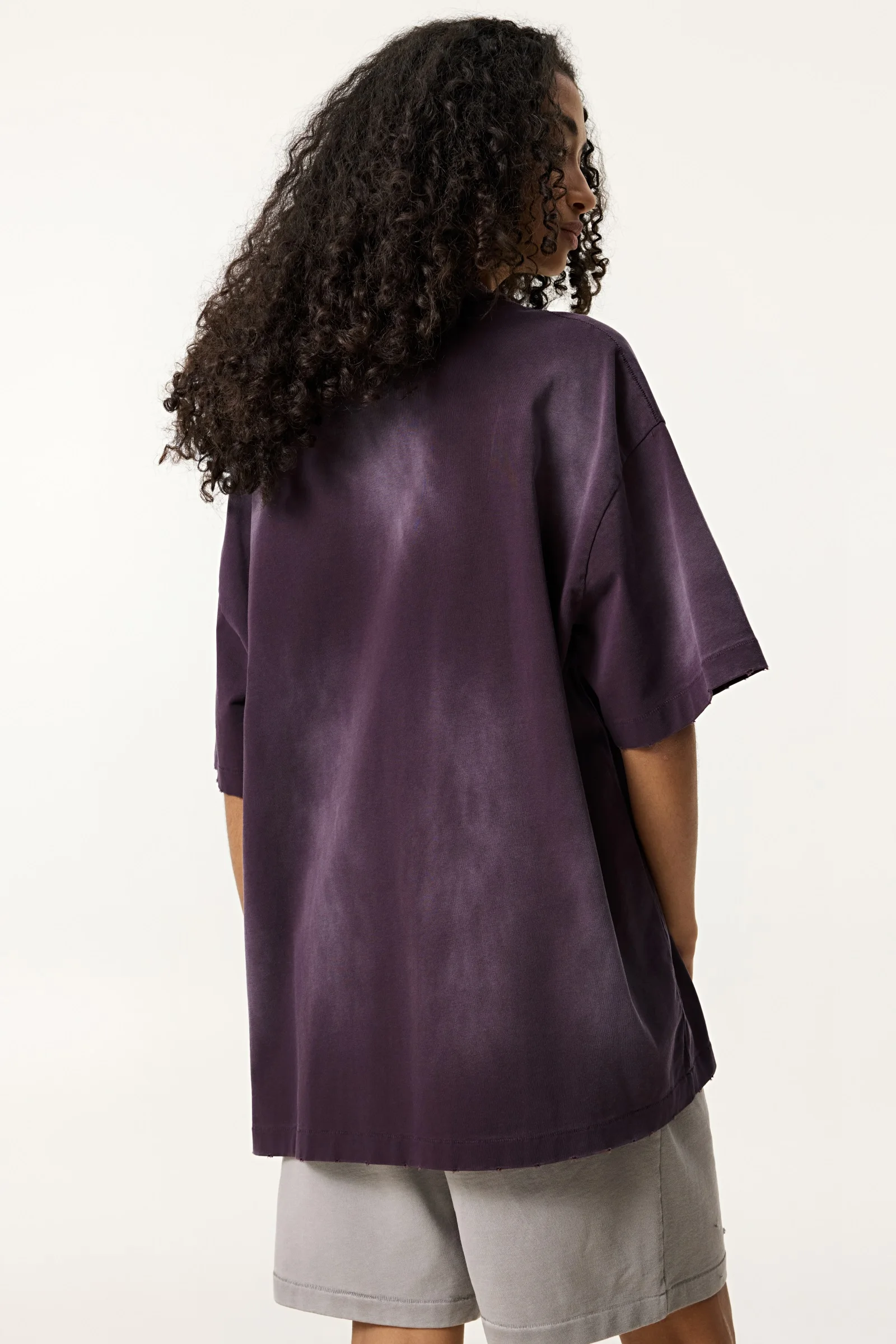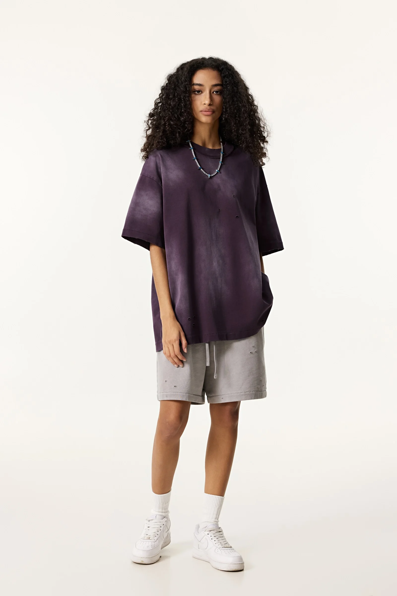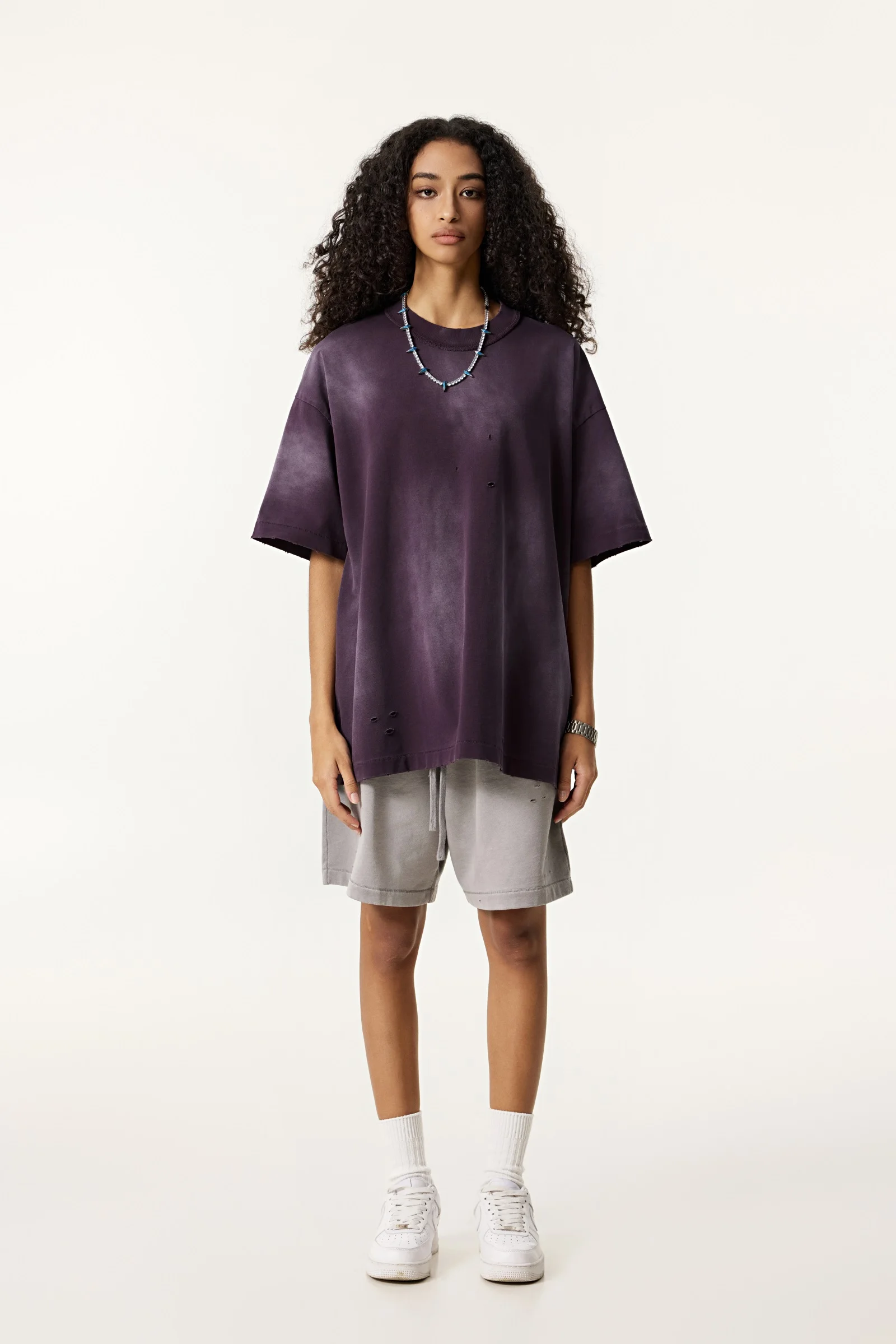 285GSM Women's Monkey-Wash PP Spray Ripped Raw-Edge Short Sleeve T-shirt