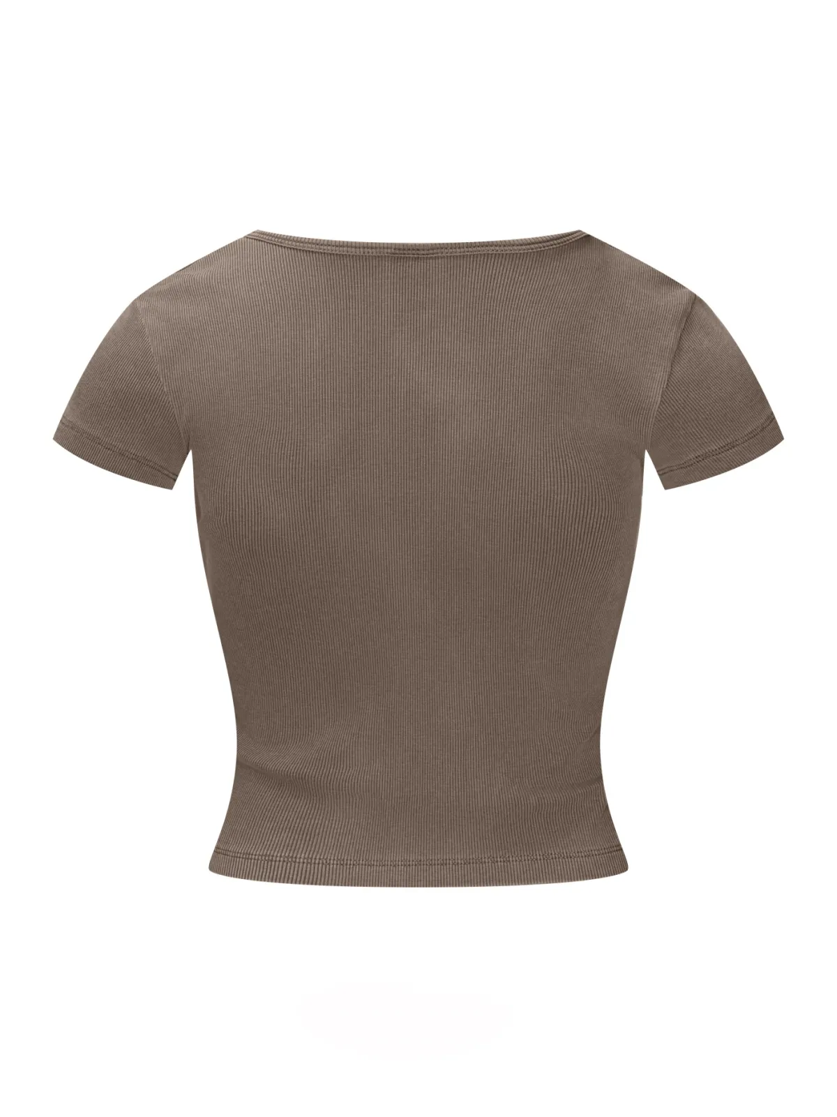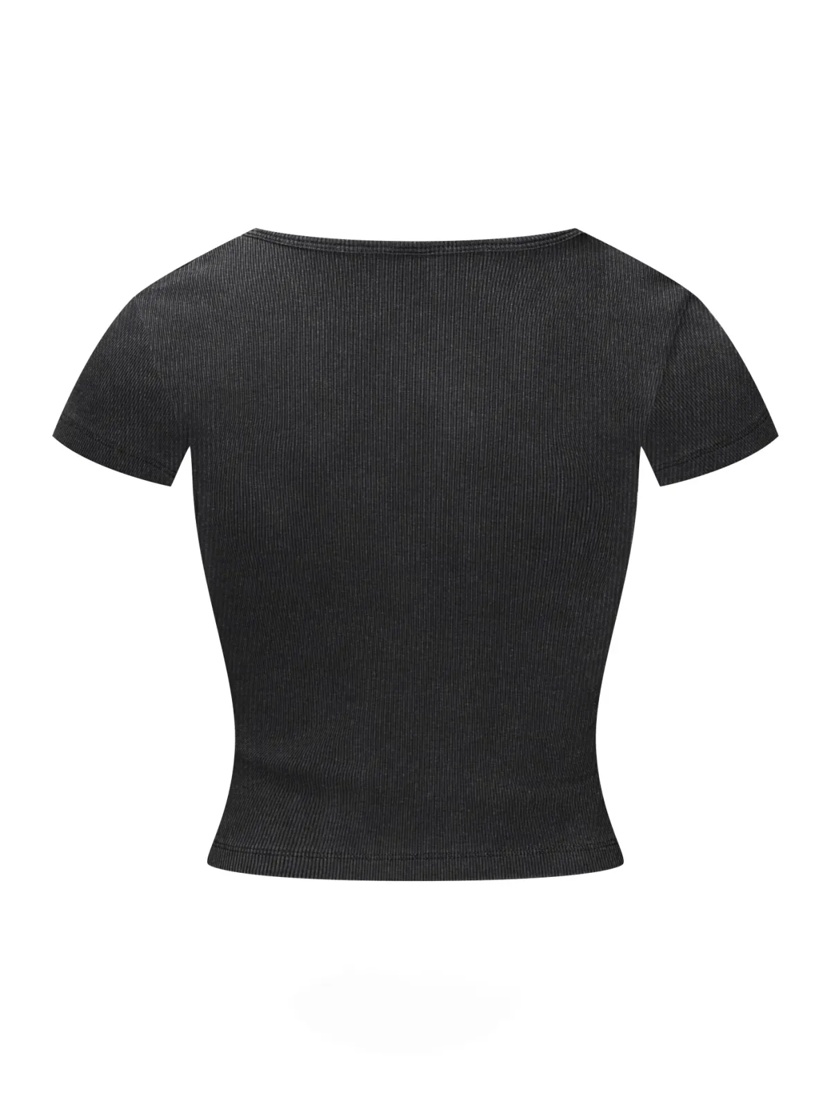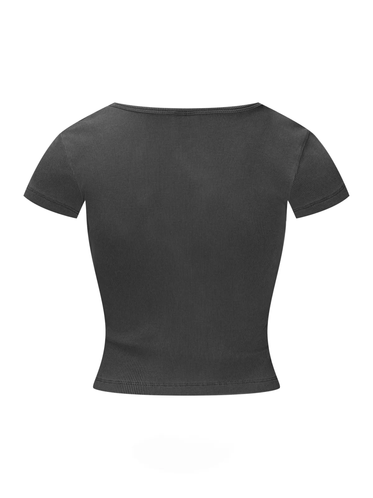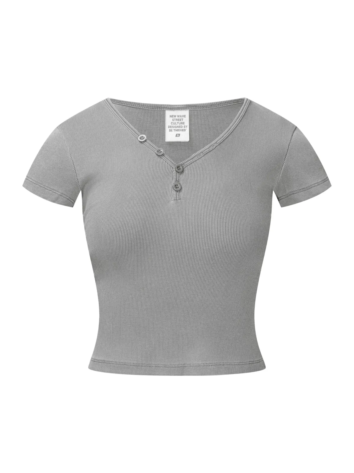 Made with a 275GSM natural fiber cotton blend that stays soft, smooth, and comfortable after repeated washing. V neck front with button detailing enhances the neckline and offers a clean, body shaping fit. Reinforced stitching with fine 12 stitches per inch provides durability and a polished finish. Completed with a vintage wax wash that creates natural fading and unique retro texture—ideal for lightweight daily wear and matching set styling.a