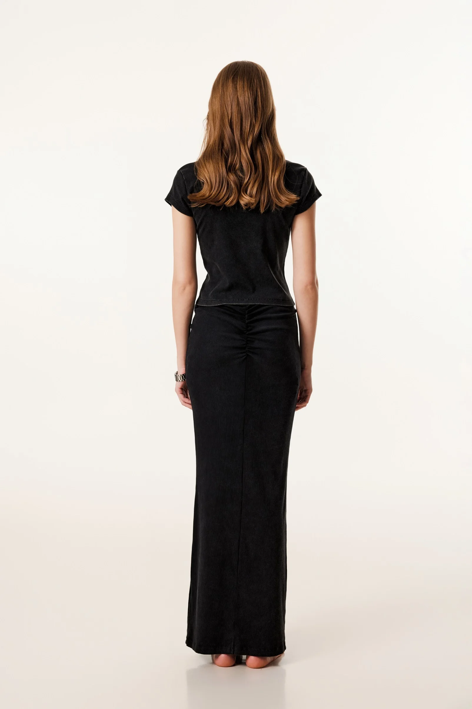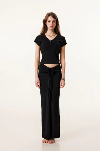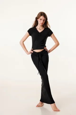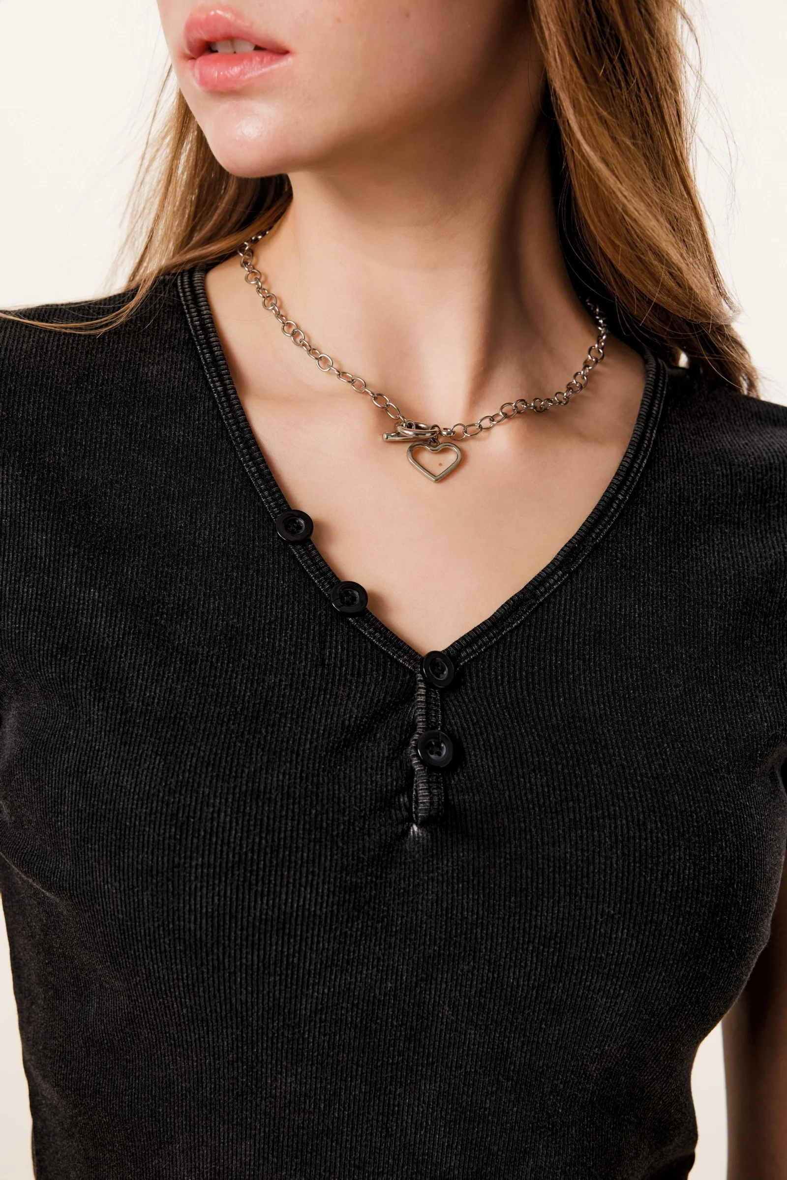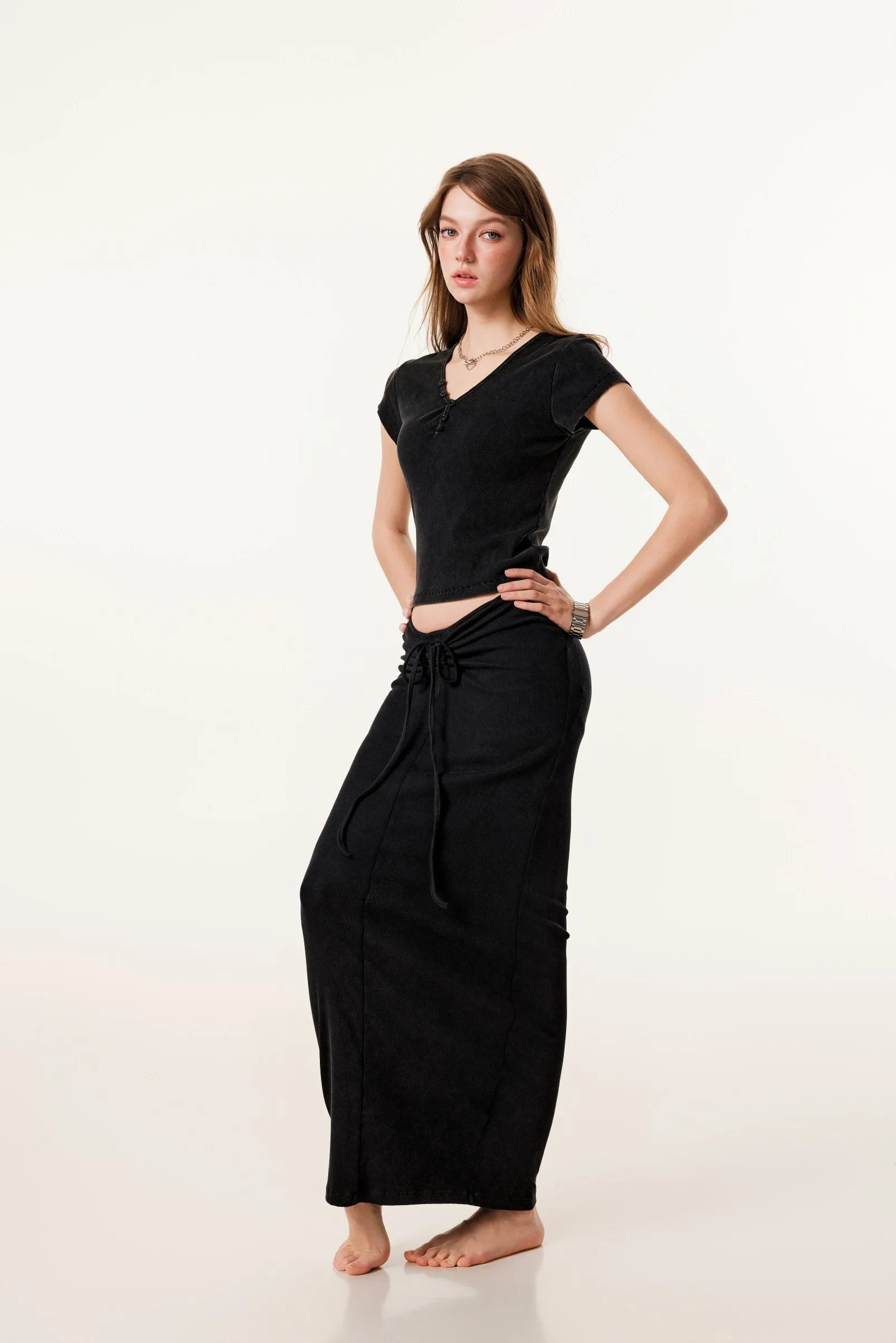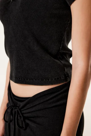 Made with a 275GSM natural fiber cotton blend that stays soft, smooth, and comfortable after repeated washing. V neck front with button detailing enhances the neckline and offers a clean, body shaping fit. Reinforced stitching with fine 12 stitches per inch provides durability and a polished finish. Completed with a vintage wax wash that creates natural fading and unique retro texture—ideal for lightweight daily wear and matching set styling.a