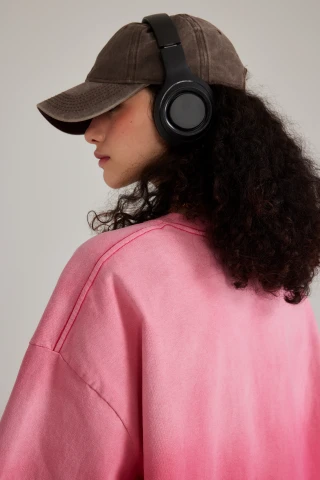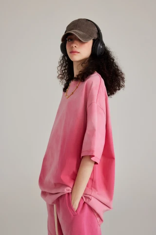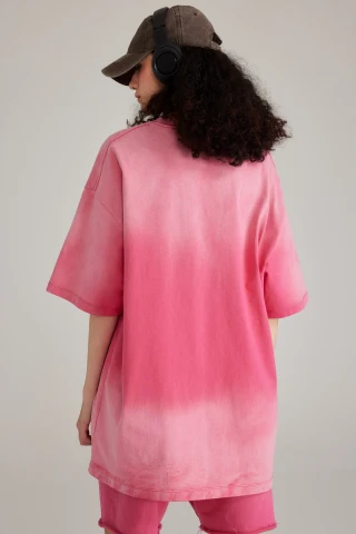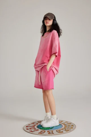 220GSM Women’s Water-Wash Raw-Edge Gradient Effect Short-Sleeve Top