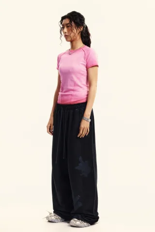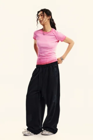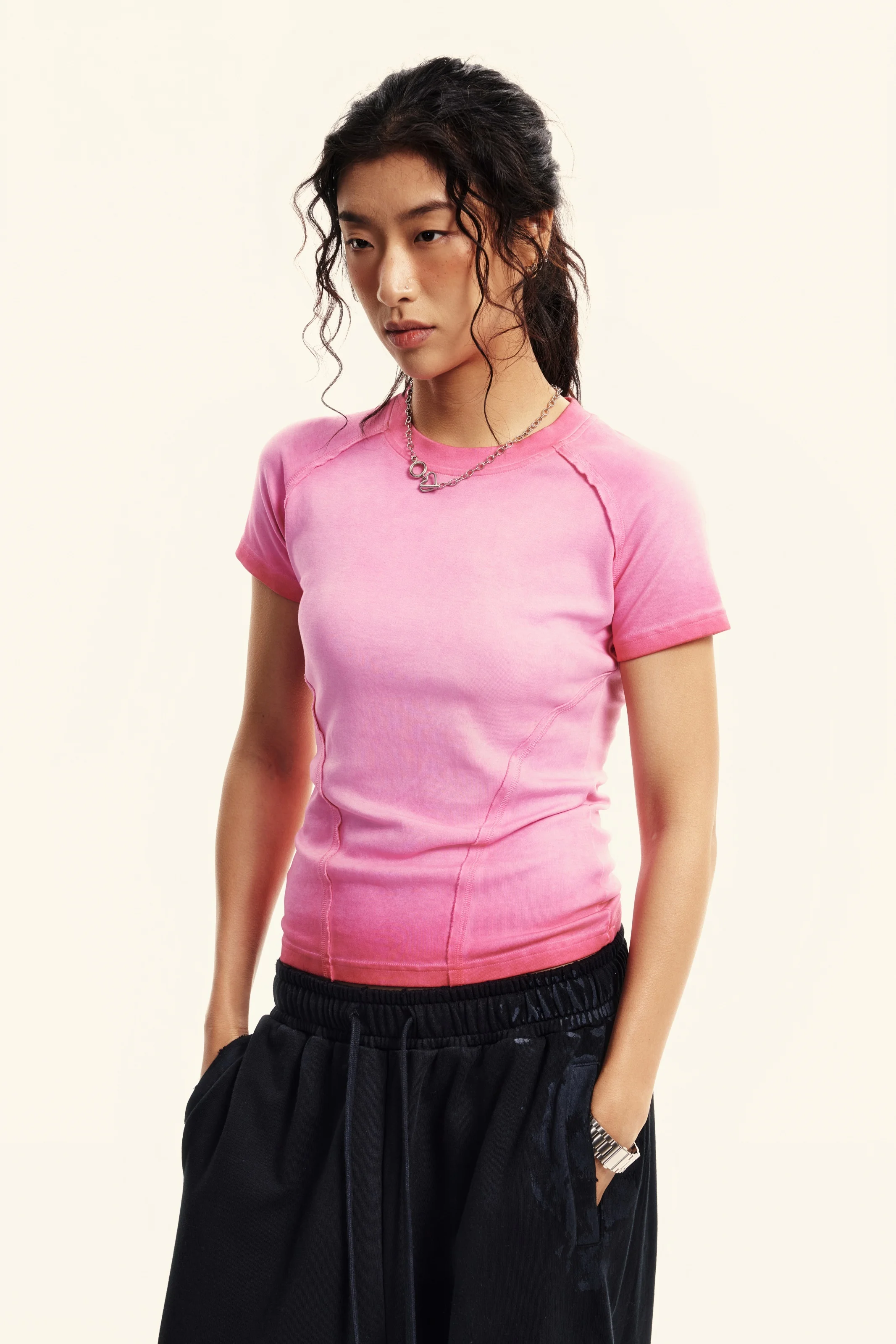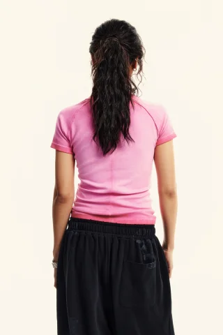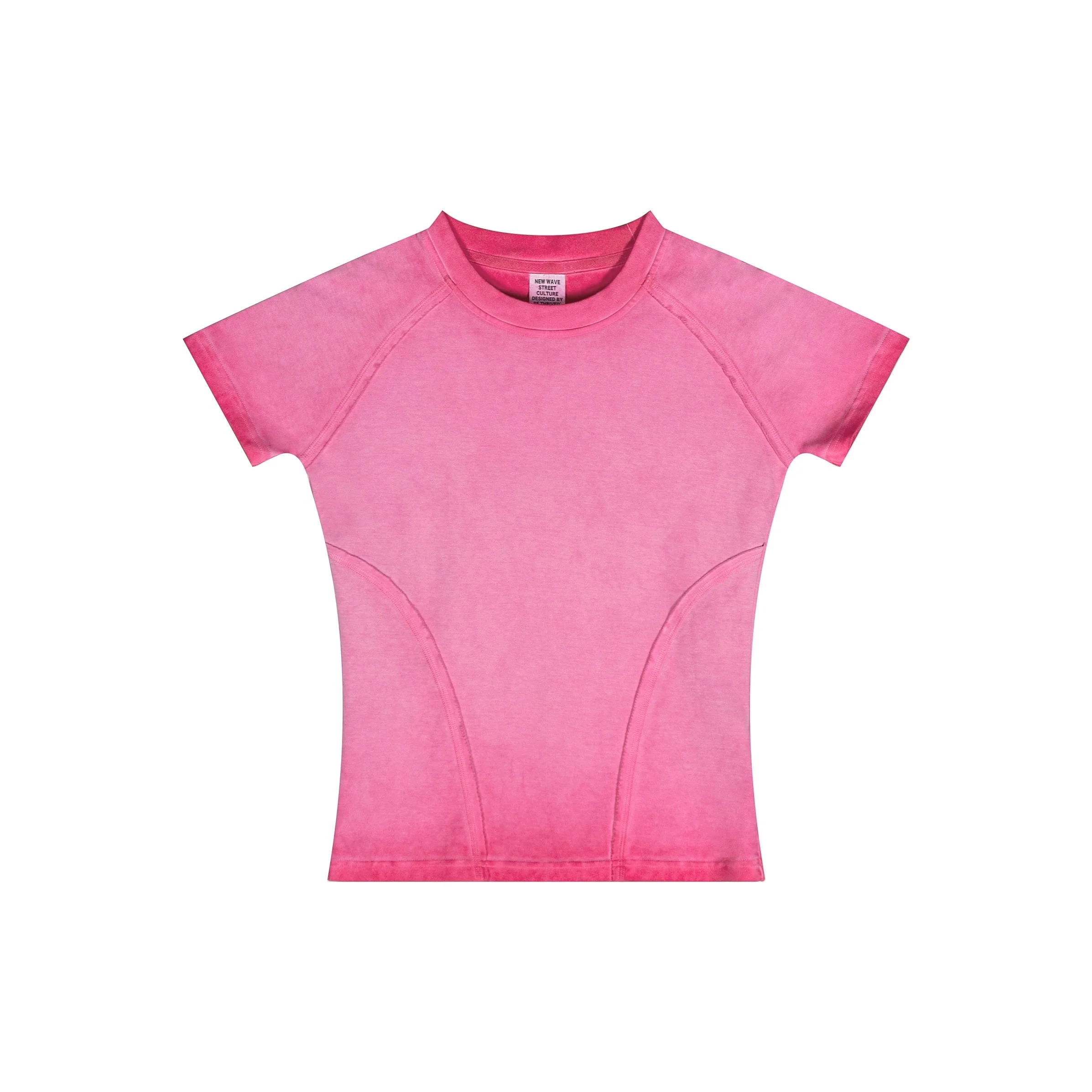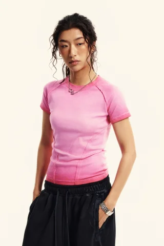 220GSM Women’s Water-Wash Raw-Edge Gradient Effect Short-Sleeve Top