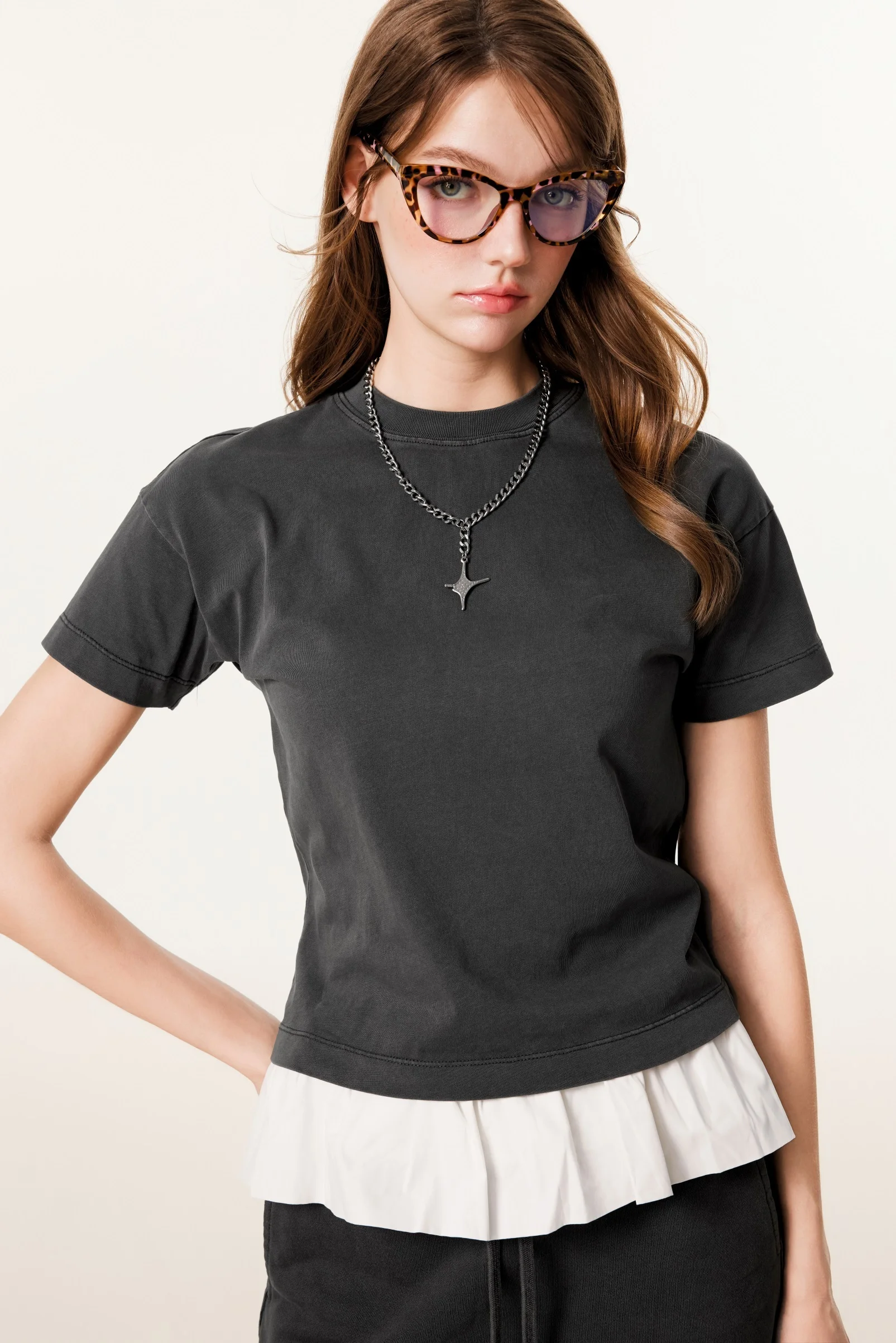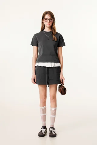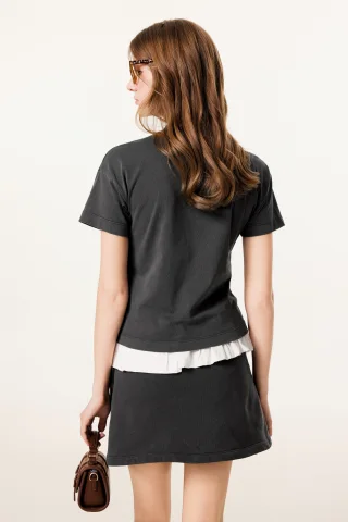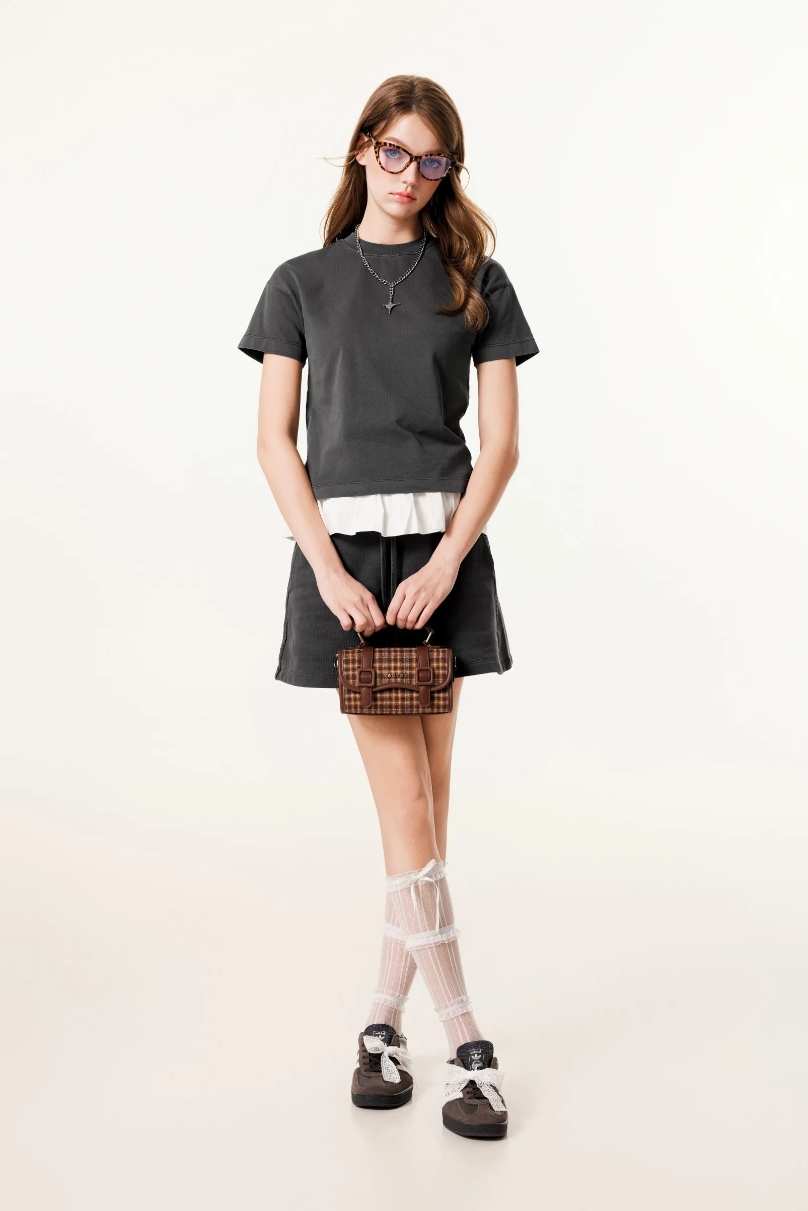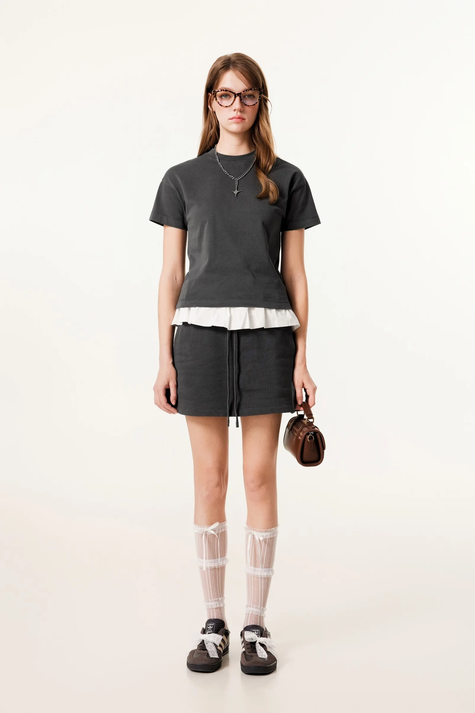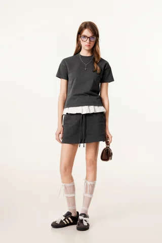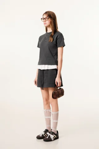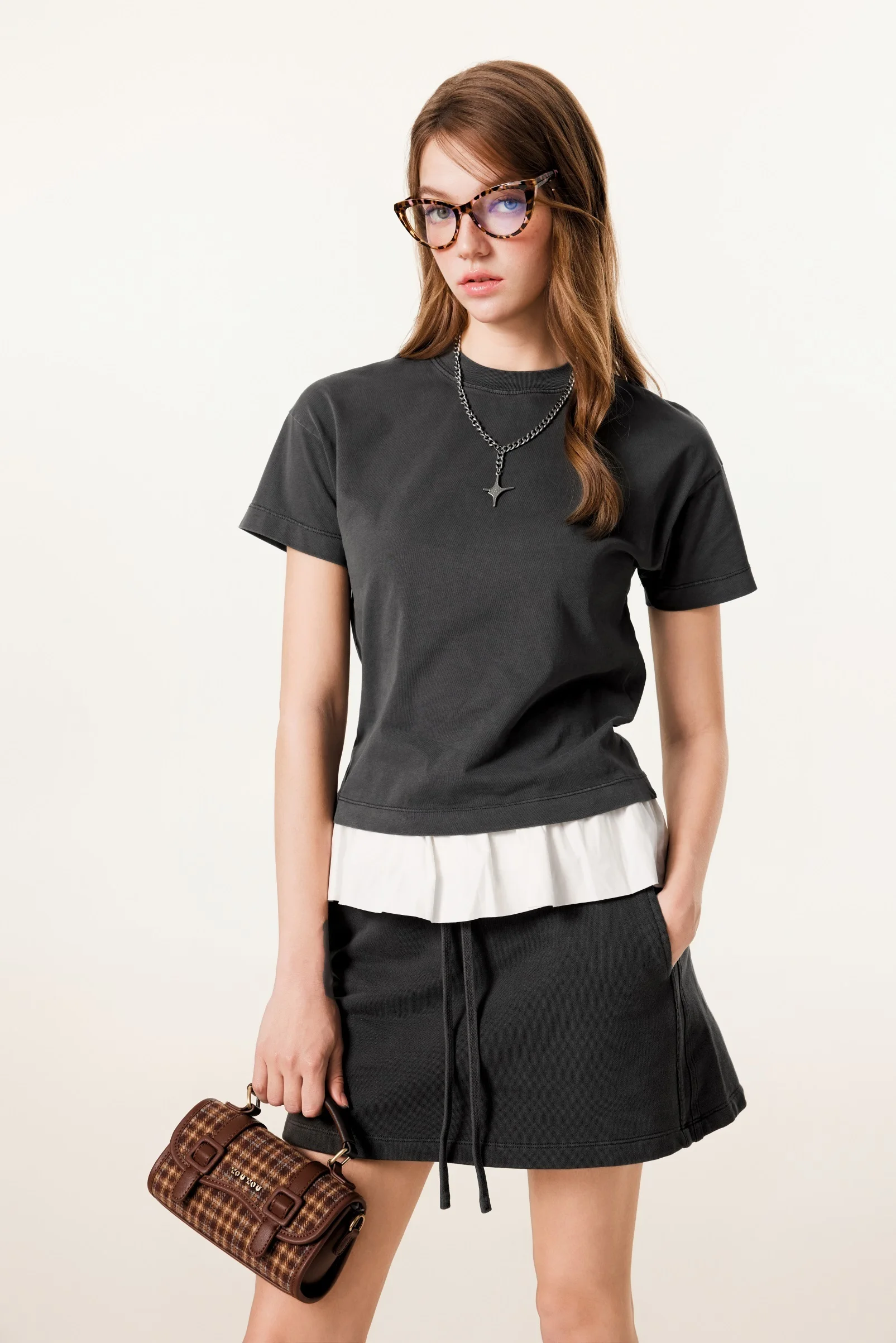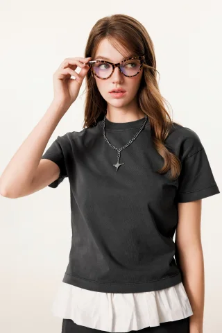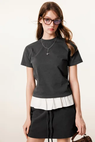 230GSM Women’s Fried-Color Snow-Wash Milan Double-Yarn Short-Sleeve T-shirt