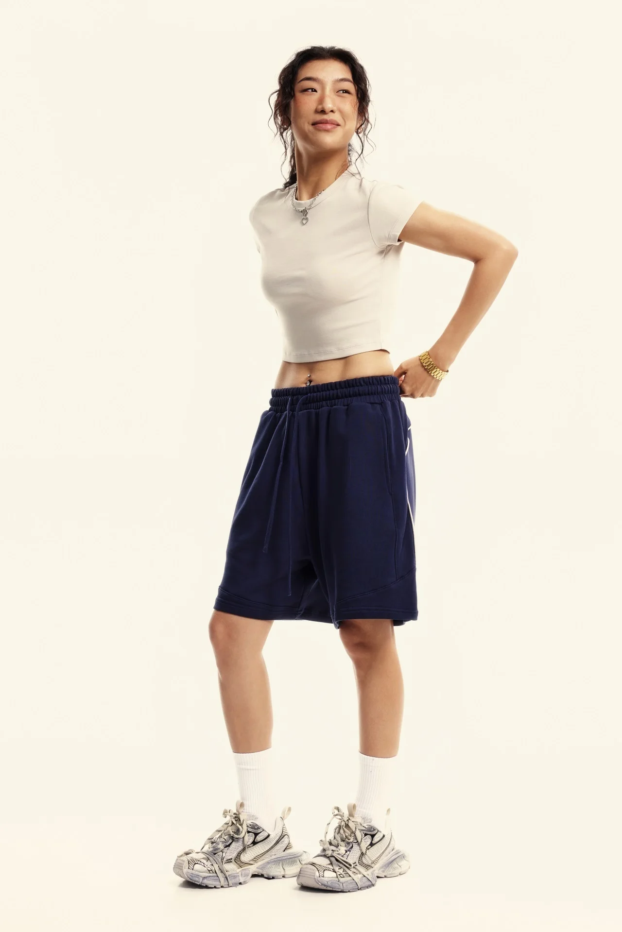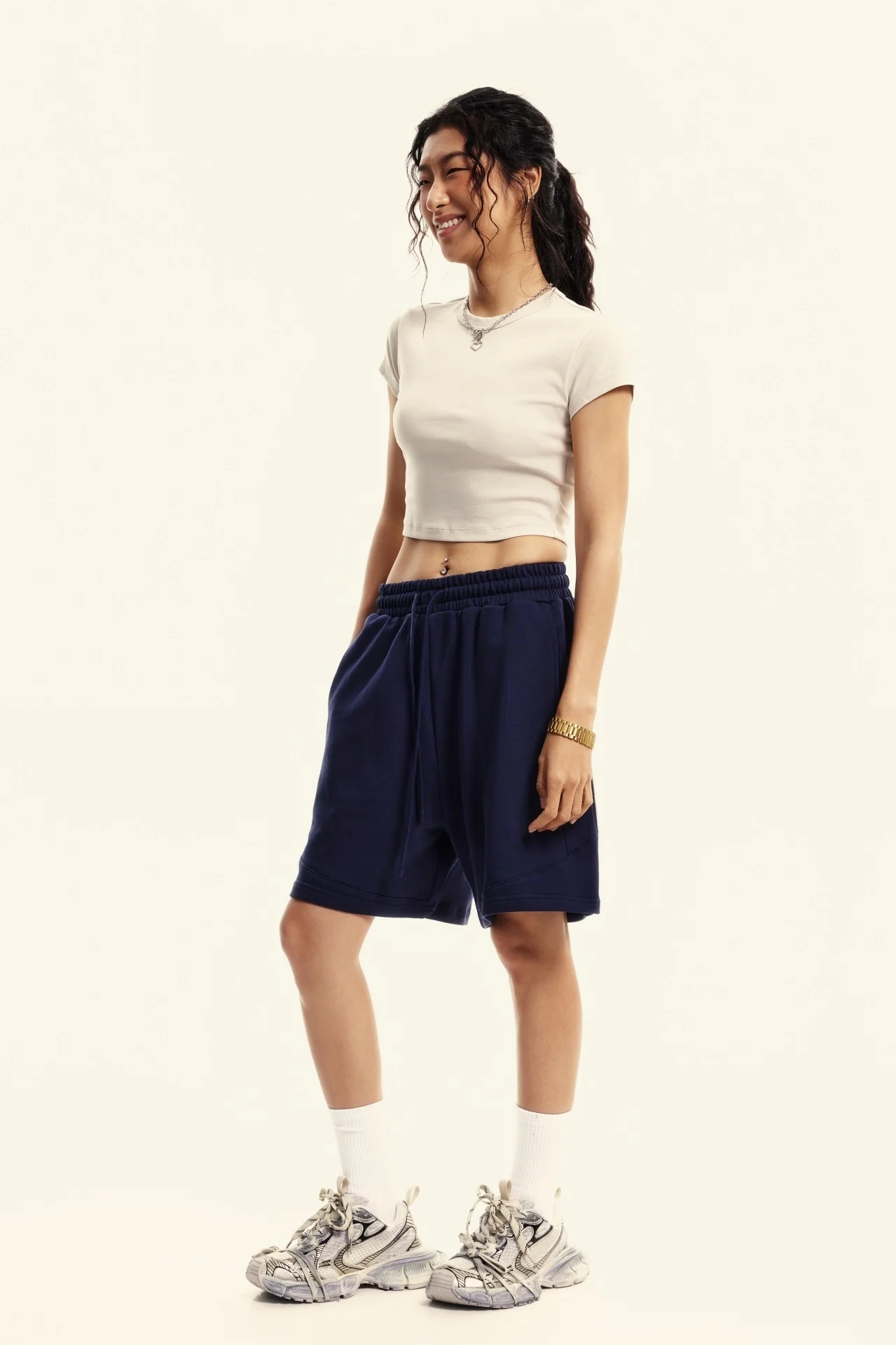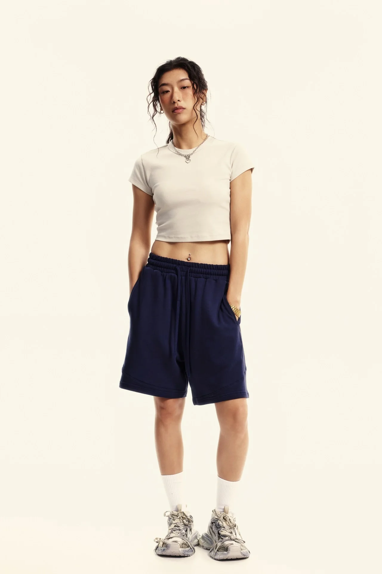 Made with 235GSM cool touch stretch cotton for a soft, breathable, and highly flexible fit. Washed finish with subtle snow fading creates a natural worn in look, enhancing the vintage character of the style. Slim cropped silhouette with gathered waist shaping highlights the midsection while subtly covering the lower abdomen. Back panel contouring accentuates shoulder blades for a flattering upper body line. Neckline and armholes are bound with self fabric for a clean finish and long lasting structure. Curved hem adds design value and visual balance. Offered in dopamine inspired colors that deliver an energetic, mood boosting aesthetic. Perfect for pairing with shorts, skirts, or parachute pants.