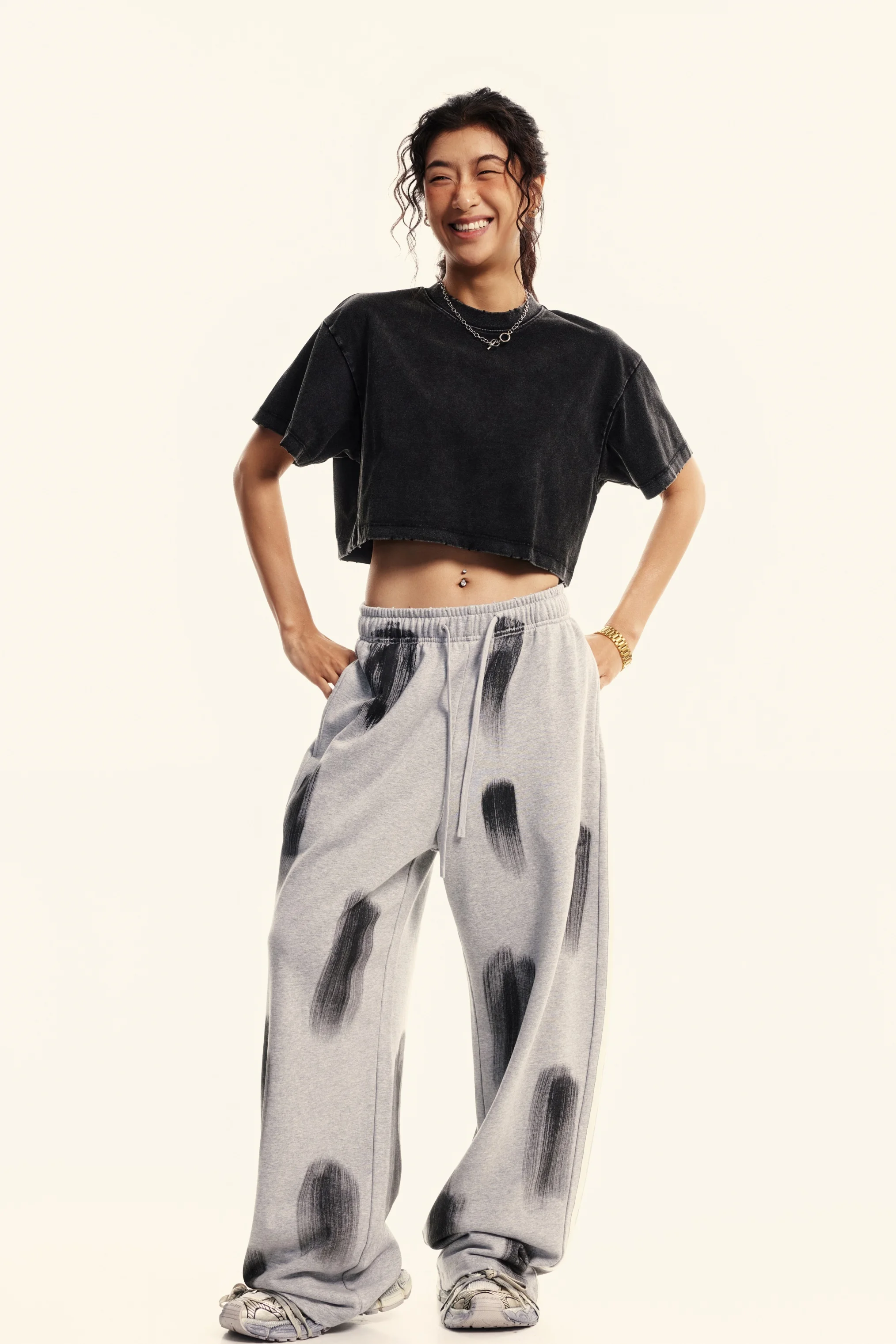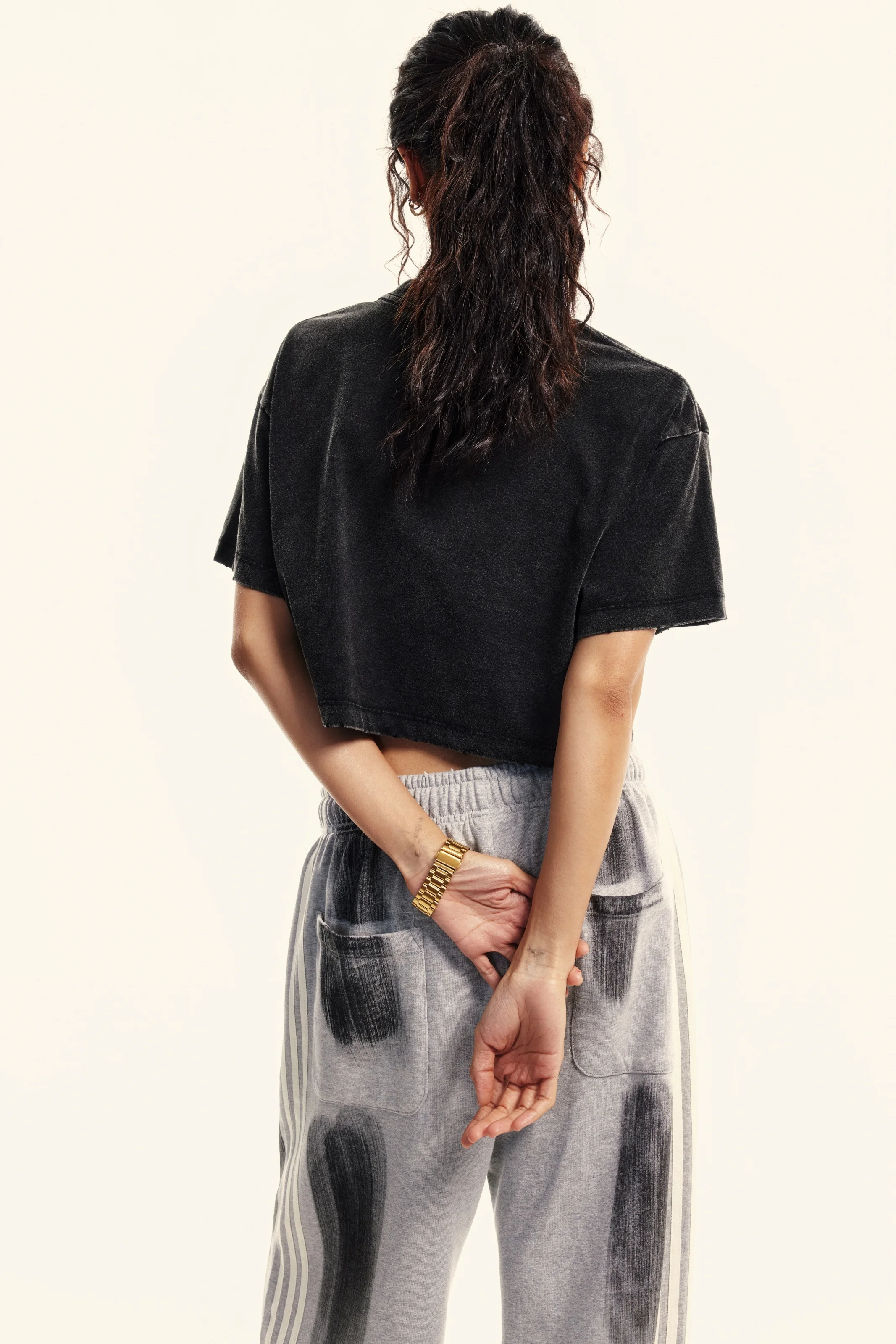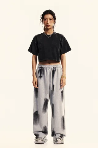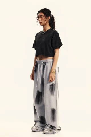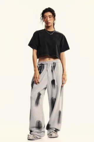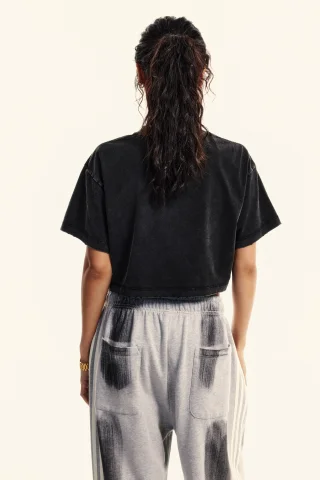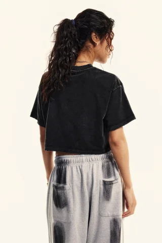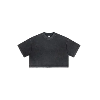 230GSM Women’s Cool-Touch Cropped Balenciaga High-Street Color Retro Snow-Wash T-shirt