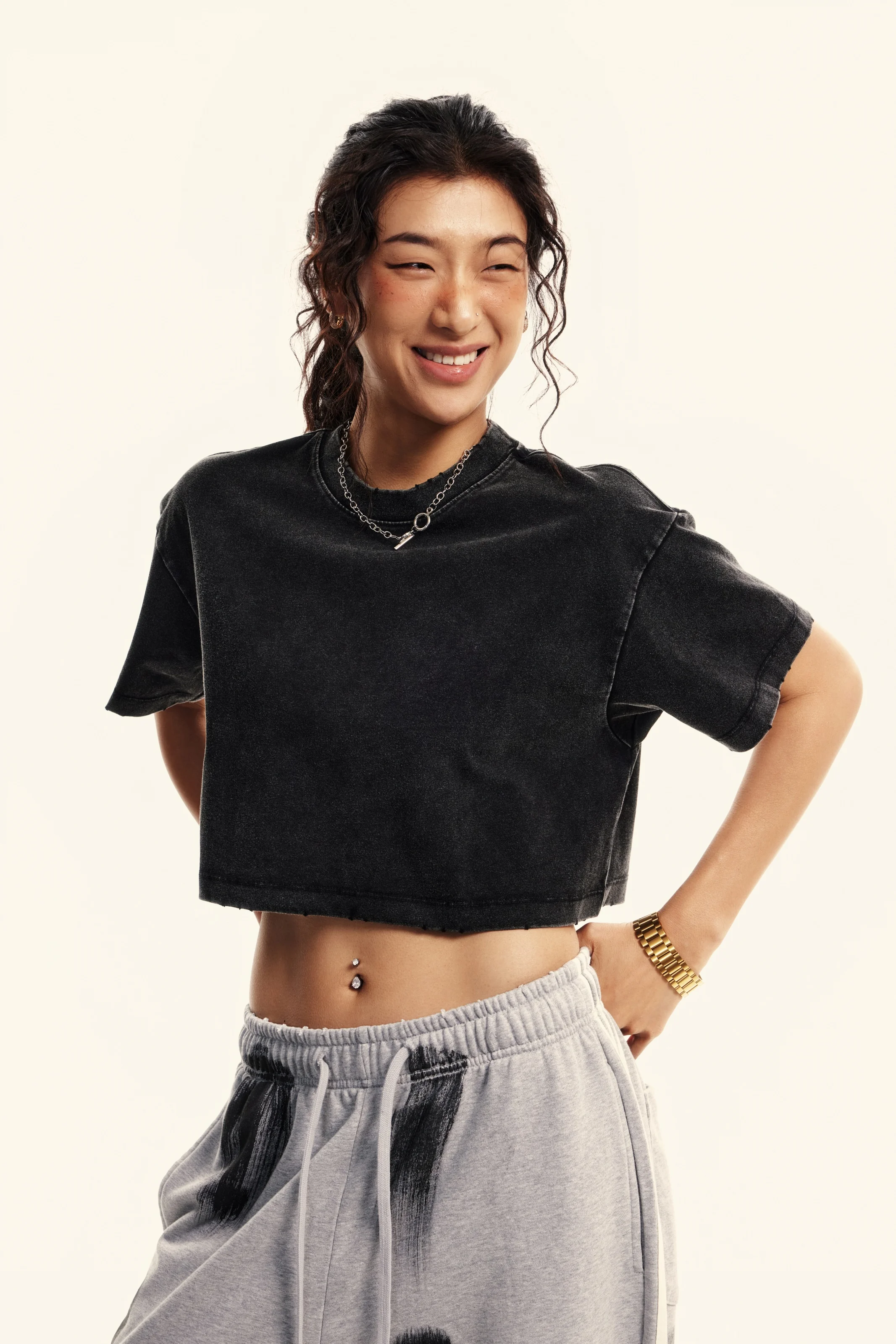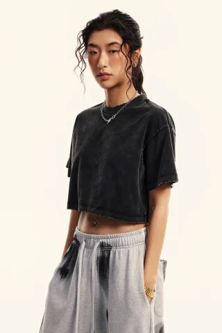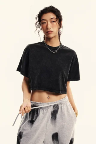 230GSM Women’s Cool-Touch Dopamine-Color Snow-Washed Vintage Cropped T-Shirt