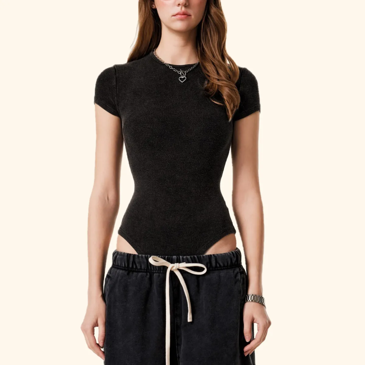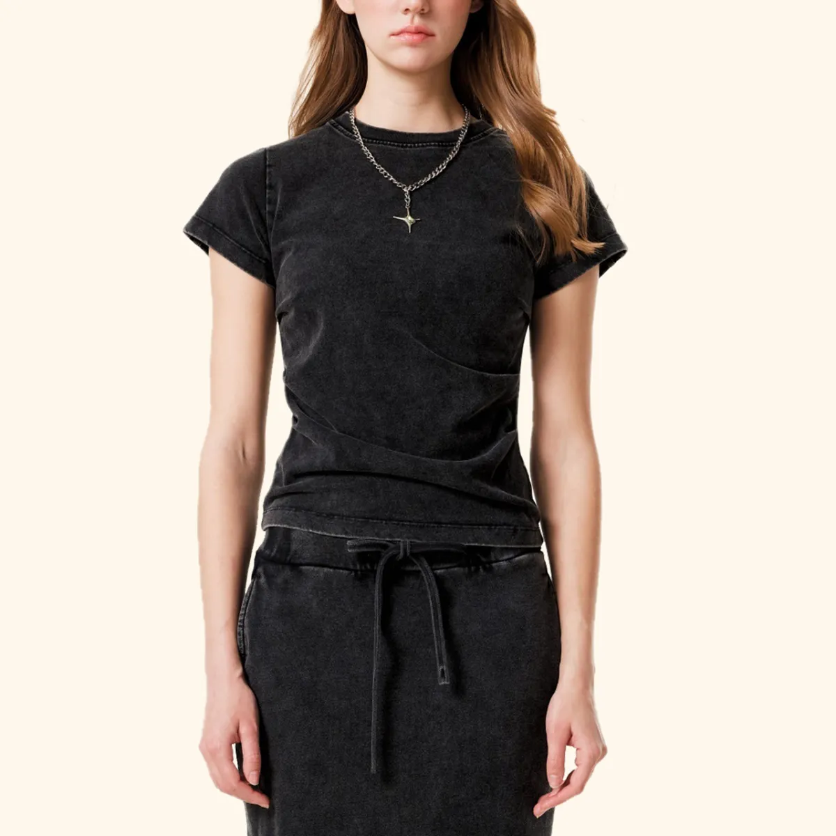 285GSM Women’s Pleated Webbing Detail T-shirt