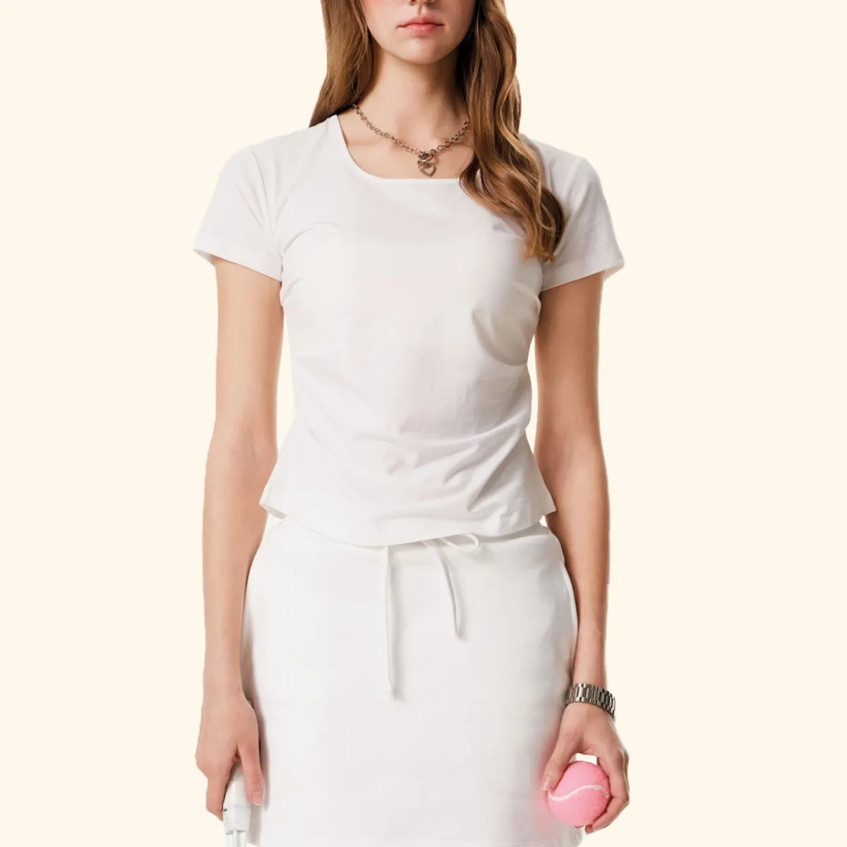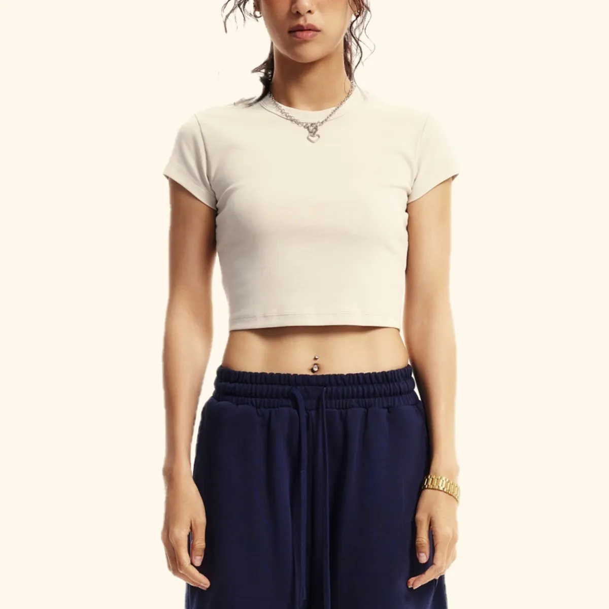 150GSM Women’s U-Neck Cropped Square Neck Short-Sleeve T-shirt