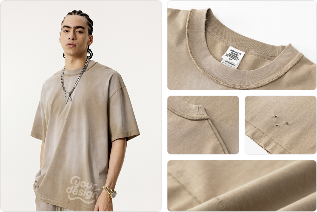Our acid wash T-shirts feature authentic sun-faded effects and a soft, worn-in feel from the first wear—a standout choice for custom prints and unique collections.