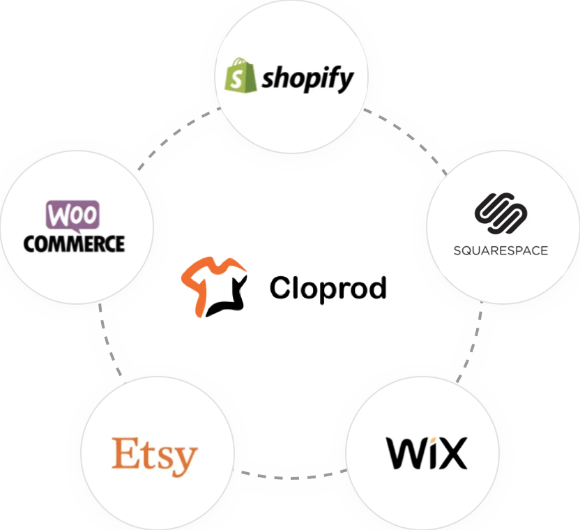 Grow your brand with our seamless one-click integration. Cloprod works with Shopify, Etsy, Wix, WooCommerce, and Squarespace, so your products go live instantly. Our support team is ready to assist you every step of the way.
